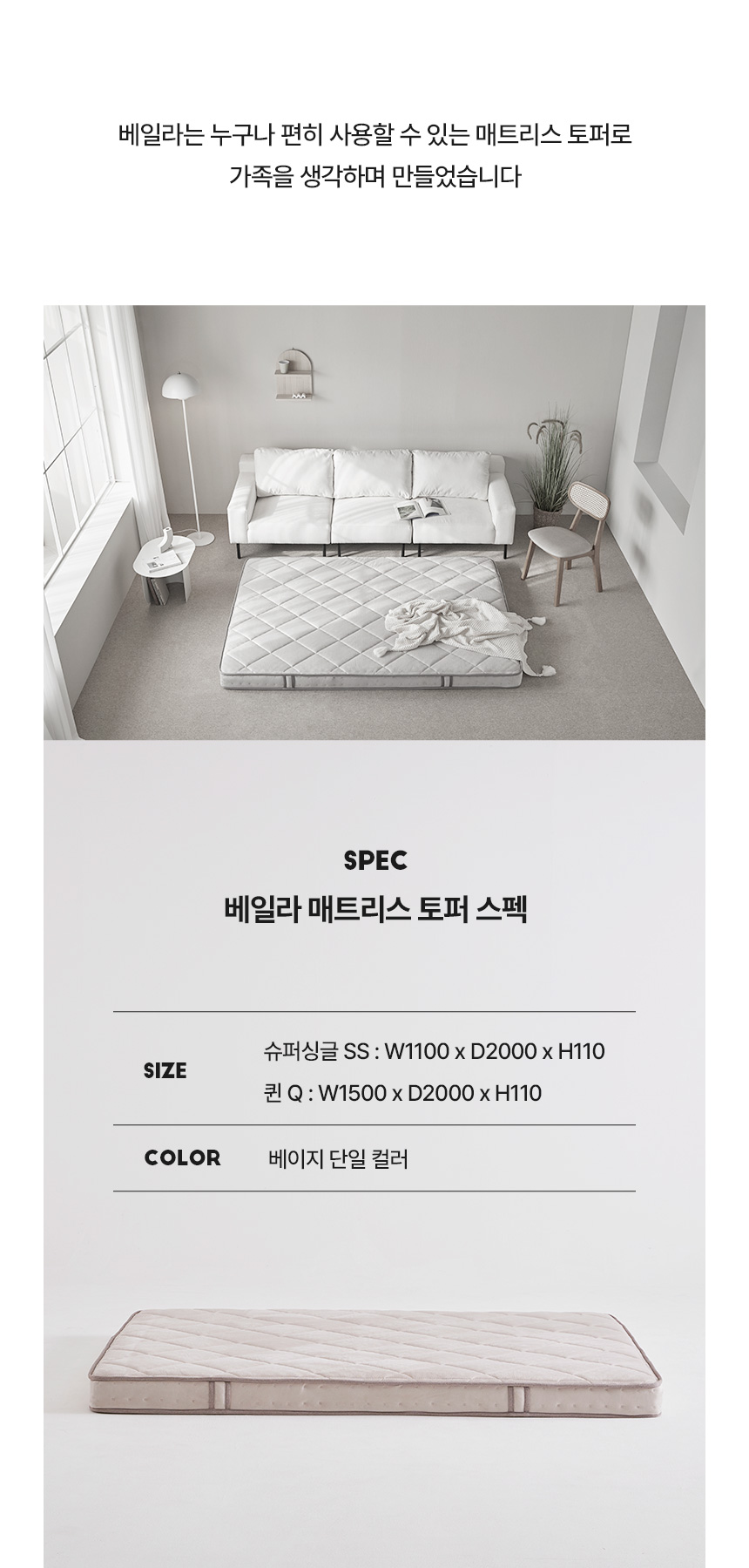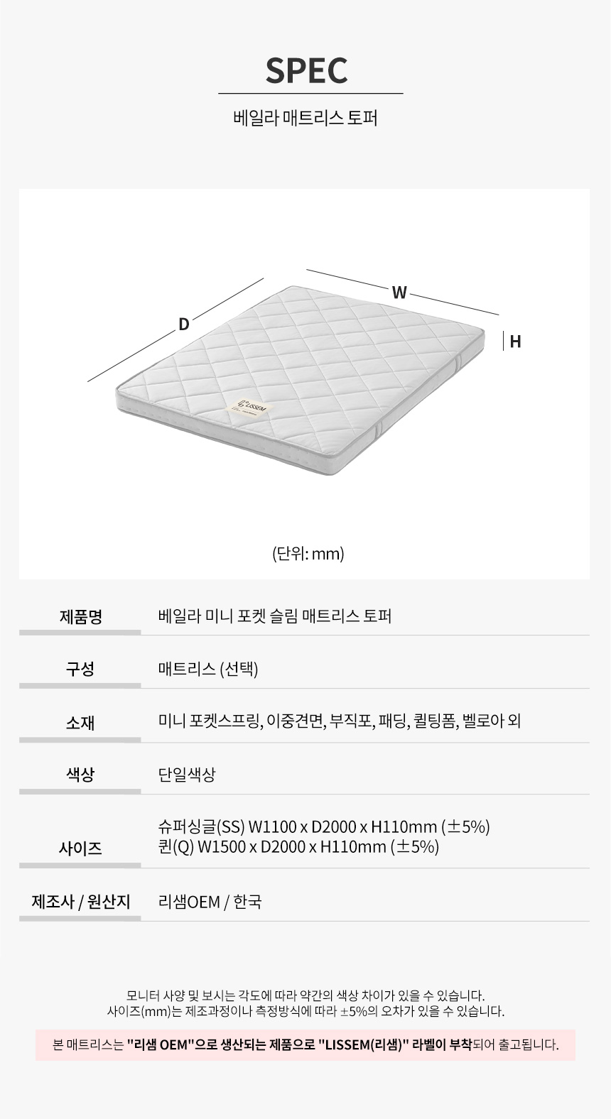 파로마 베일라 미니포켓 슬림 매트리스 바닥 토퍼 (SS/Q)