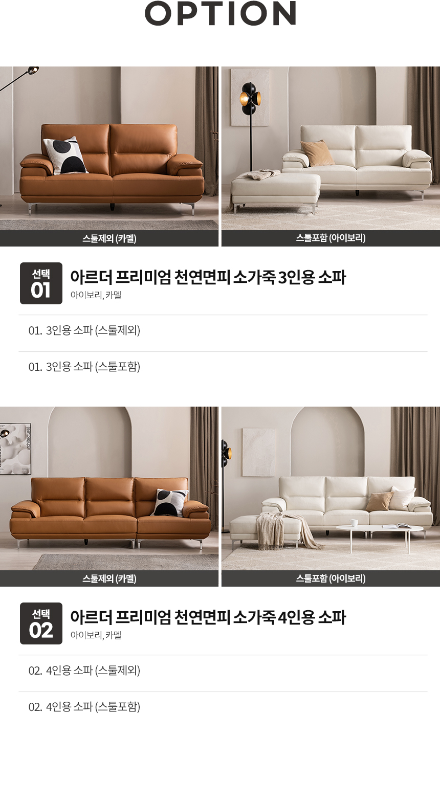 삼익가구 아르더 프리미엄 천연면피 소가죽 소파 (3인 /4인)