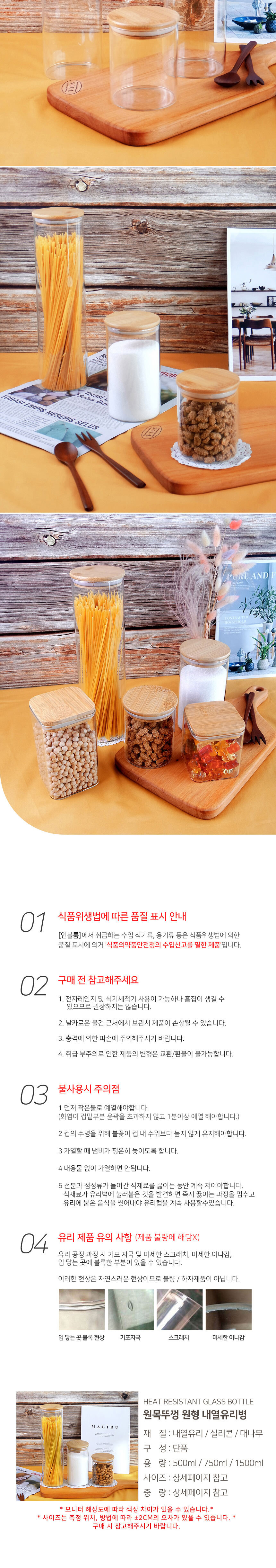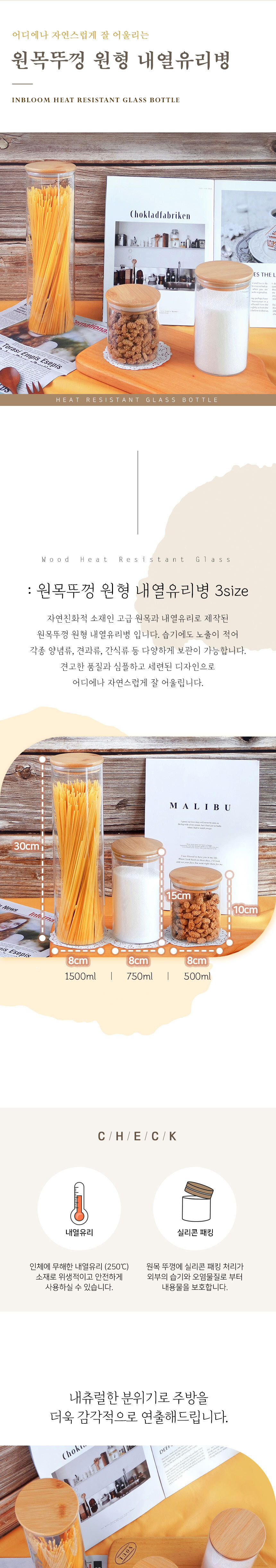 인블룸 원목뚜껑 원형 내열유리병 3종 택1