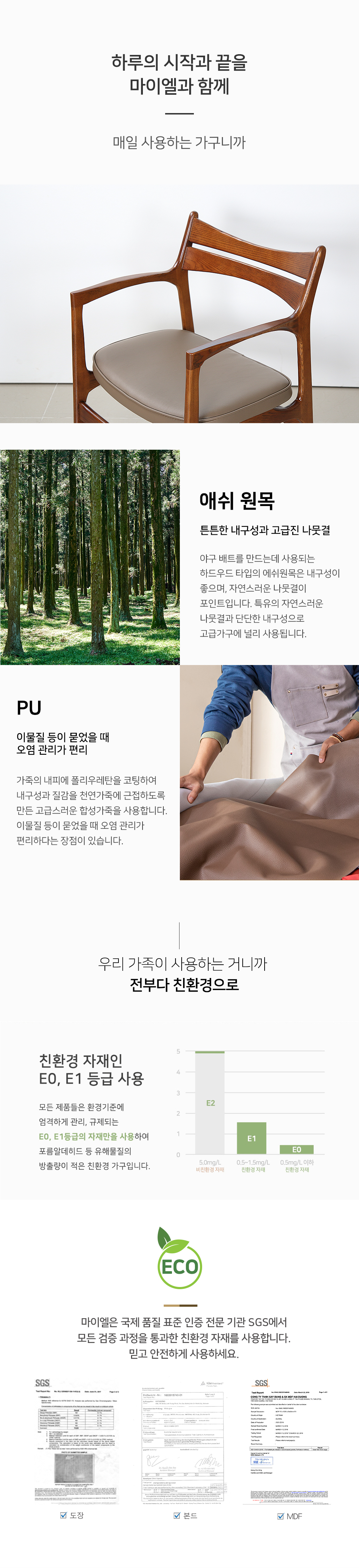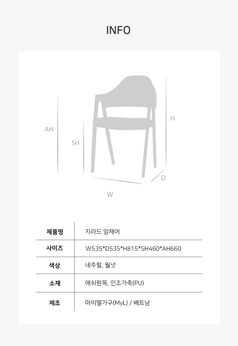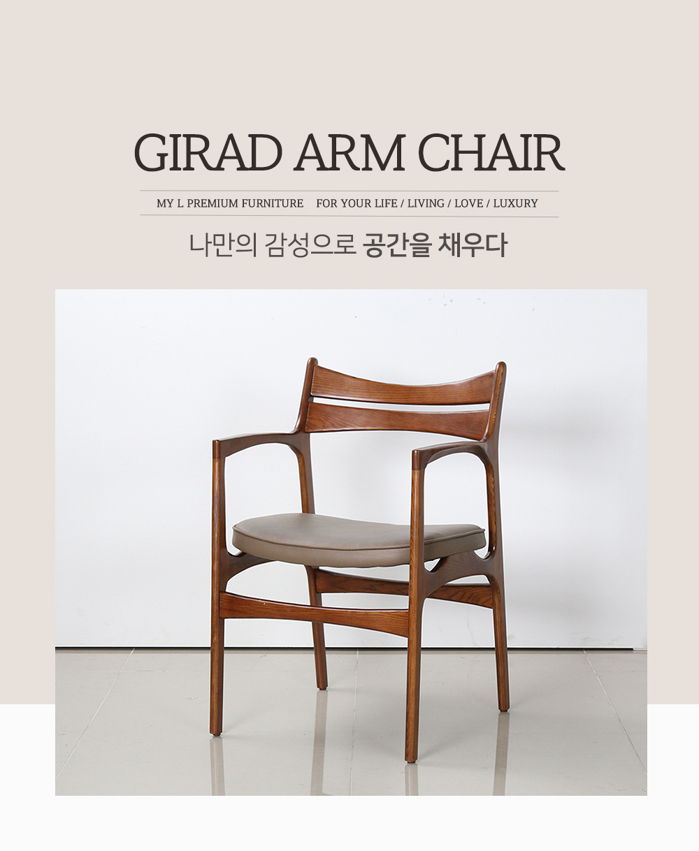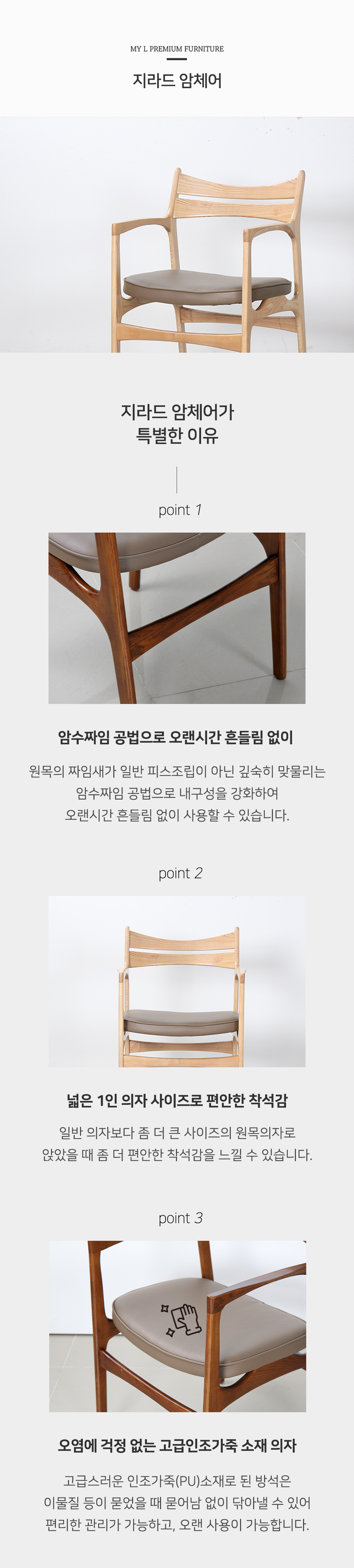 마이엘 지라드암체어 네추럴 가죽 원목 인테리어 편한 식탁의자