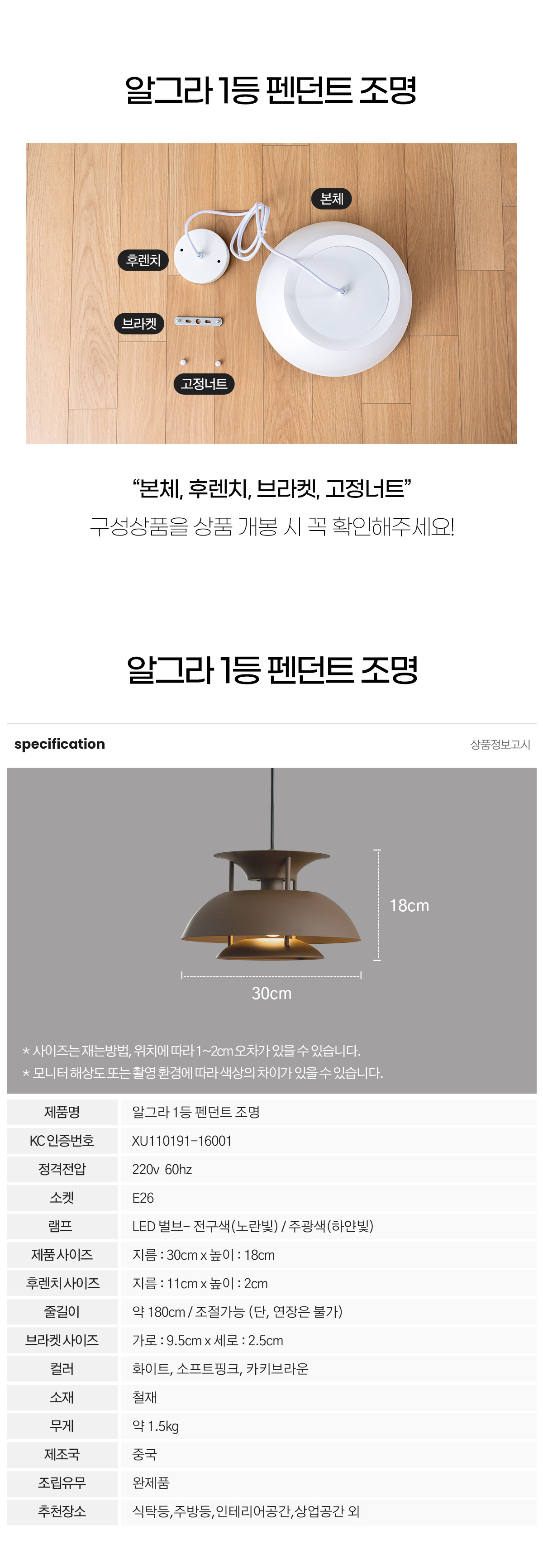 알그라 1등 식탁등 식탁조명 카키브라운,소프트핑크/램프포함