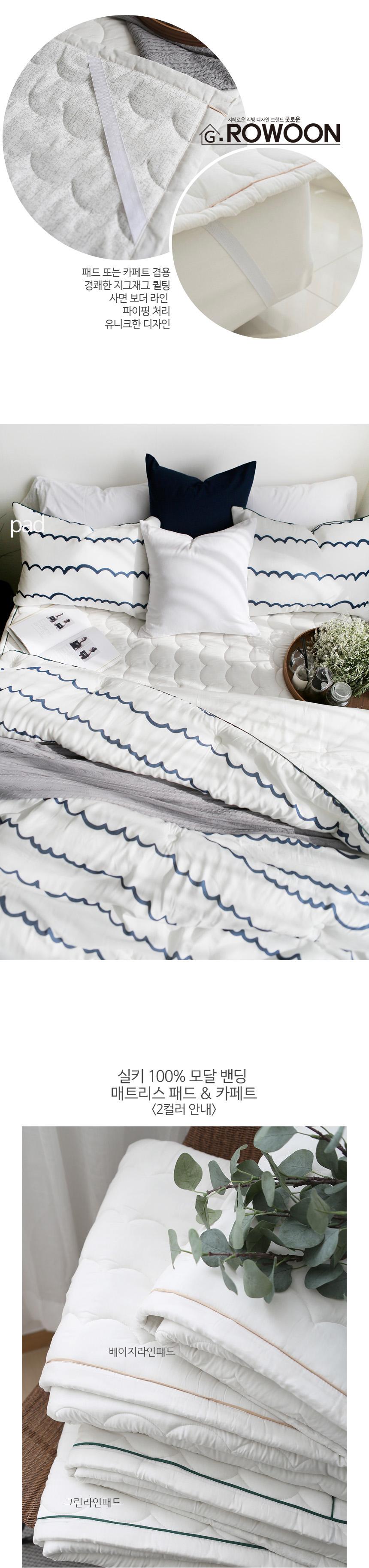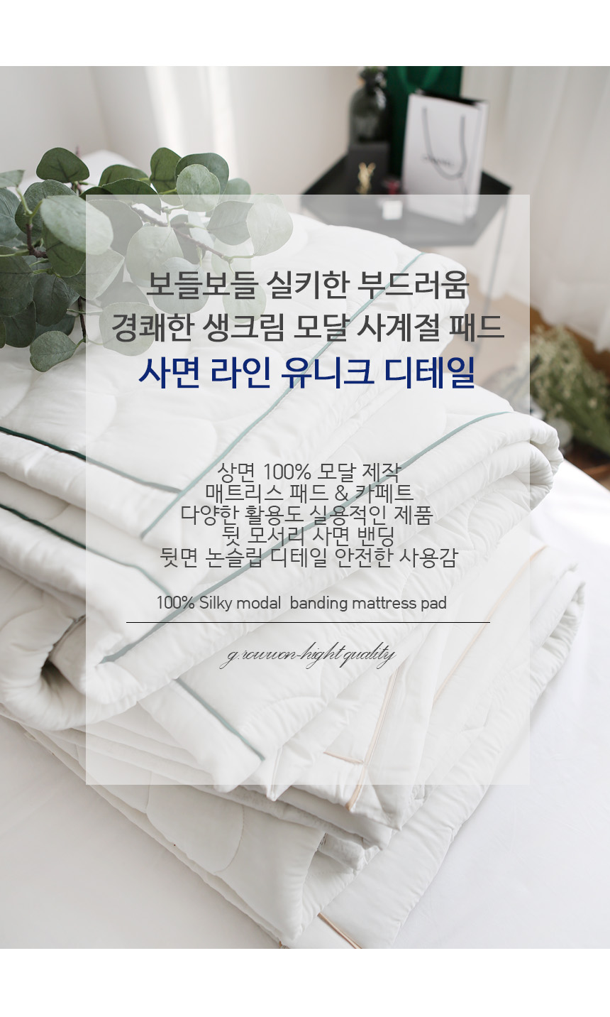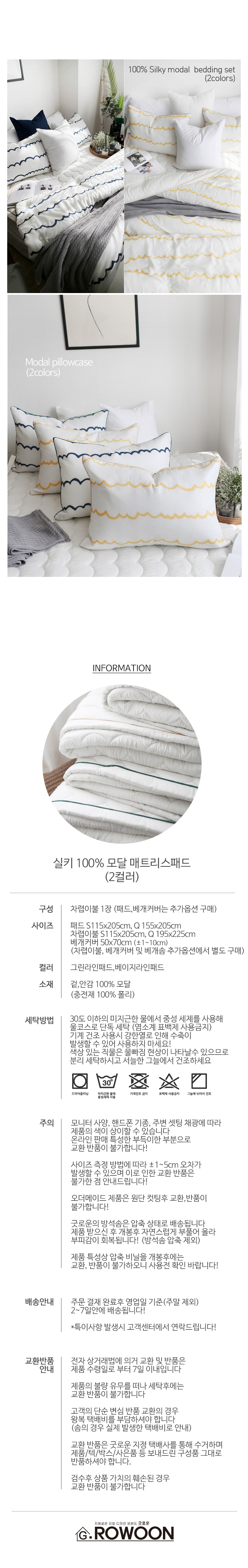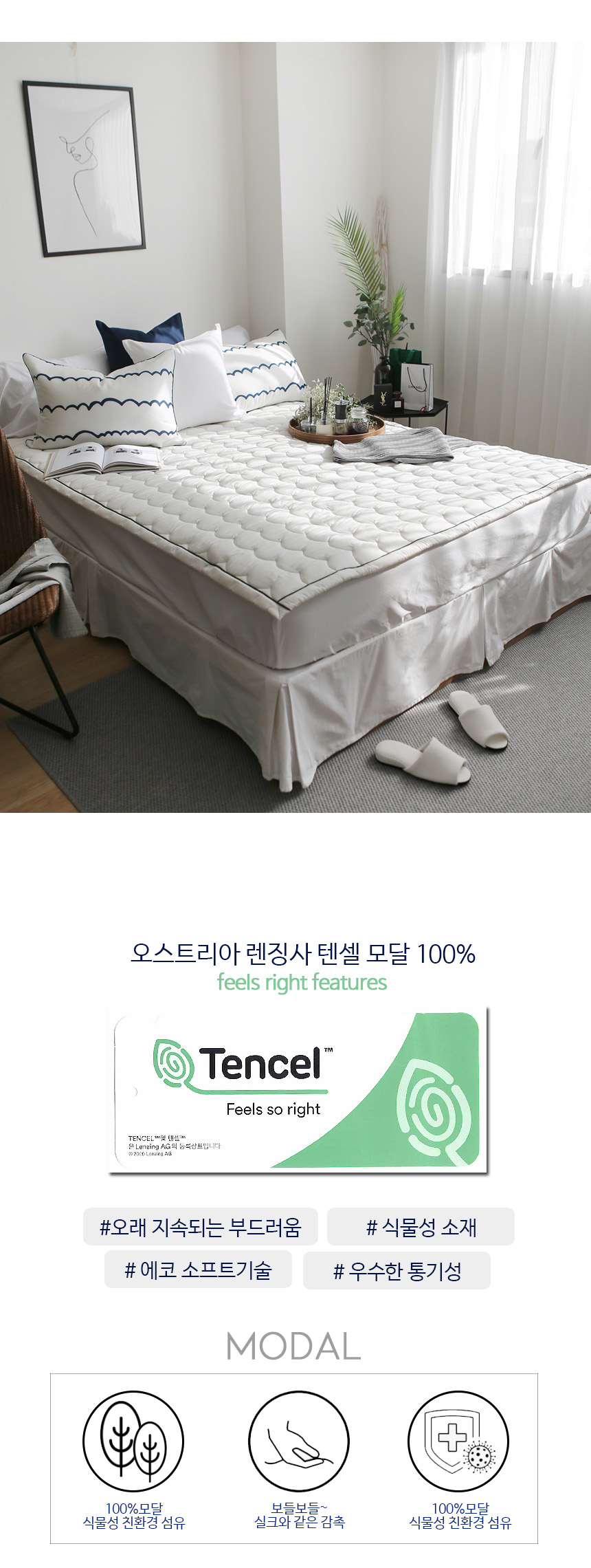 [윗면 100% 모달 제작 / 보드보들 생크림 감촉 소프트 터치 / 뒷사면 모서리 밴딩 디테일 / 경쾌하고 화사한 몽글몽글 퀼팅 /뒷면 미끄럼 방지 / 싱글 퀸사이즈 / 차렵이불 패드 베개커버 / 2컬러]