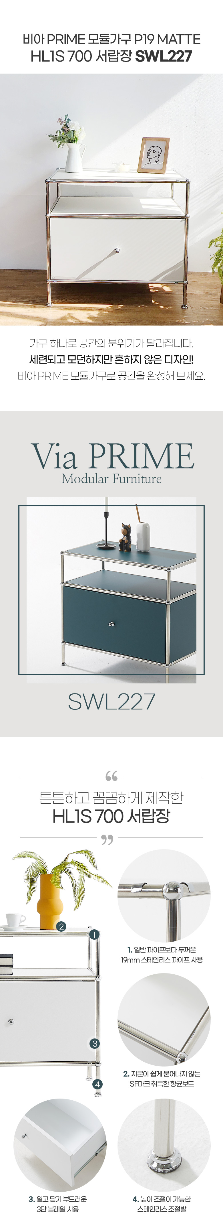 비아 PRIME 모듈가구 P19 MATTE HL1S 700 서랍장 SWL227C