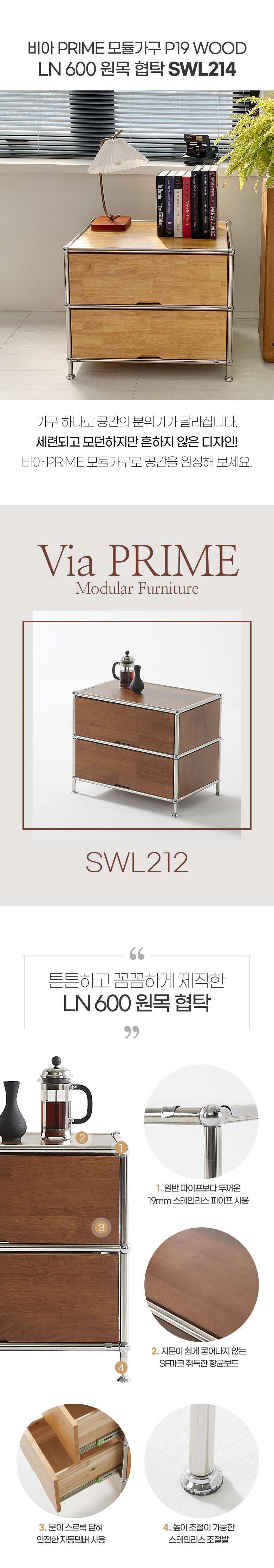 비아 PRIME 모듈가구 P19 WOOD LN 600 원목 협탁 SWL214C