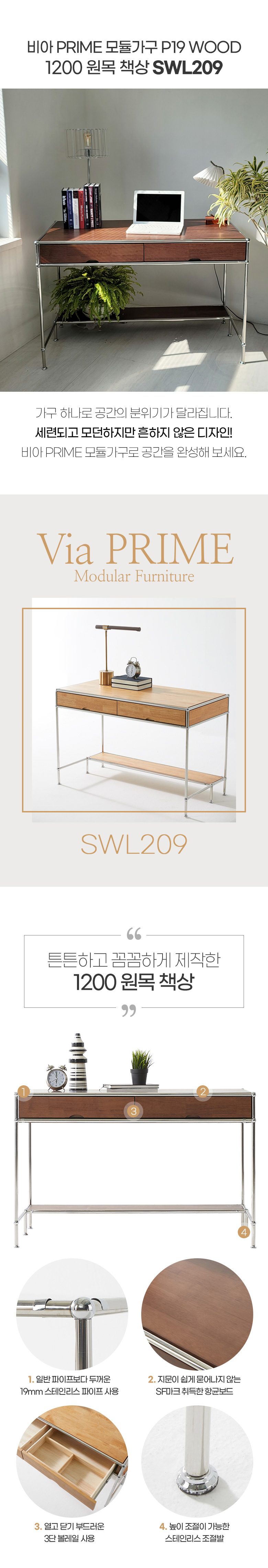 비아 PRIME 모듈가구 P19 WOOD 1200 원목 책상 SWL209C