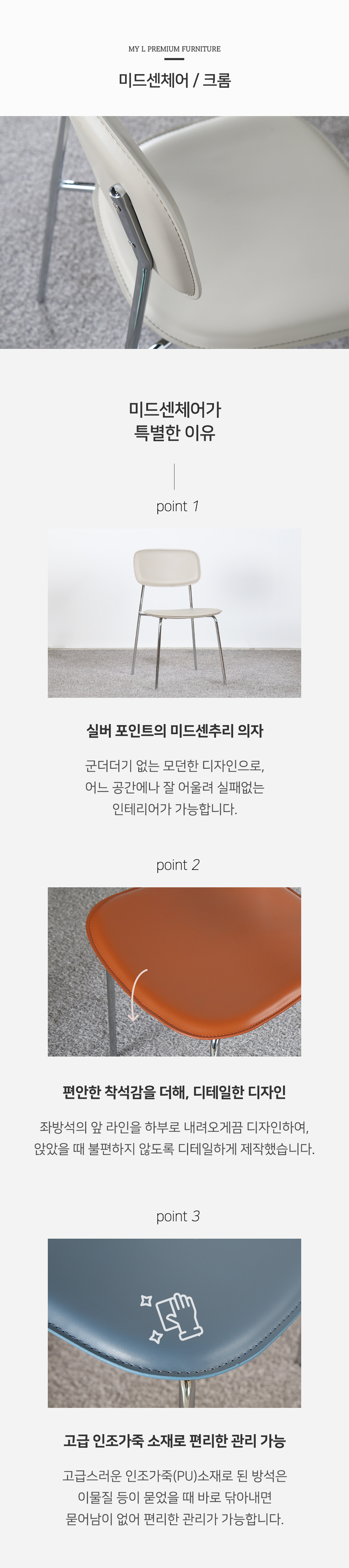 미드센크롬 고급인조가죽 인테리어 모던미드센추리 식탁의자