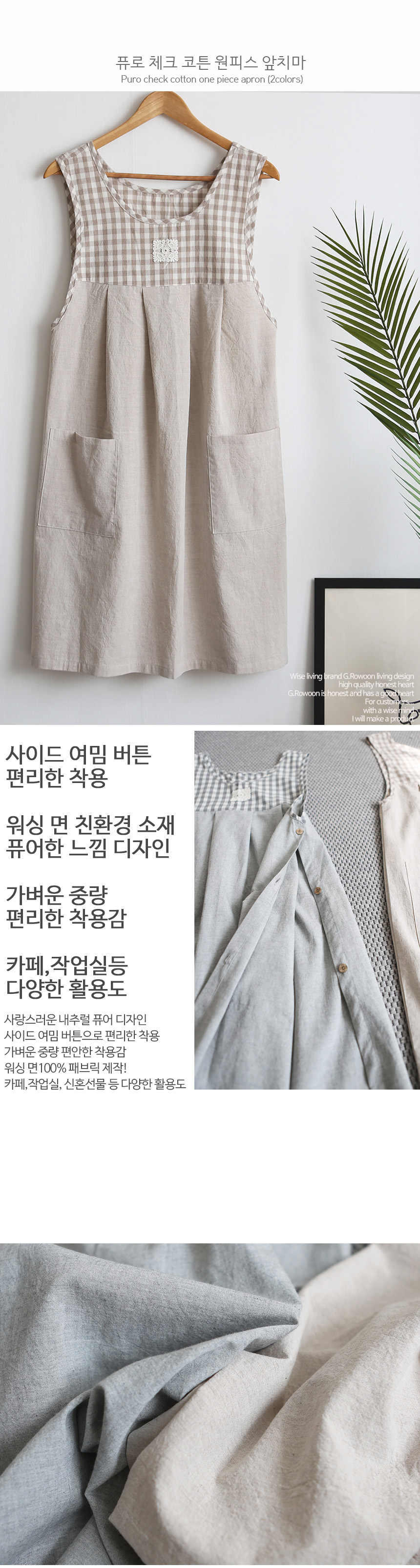 ?[ 친환경 워싱면 제작 / 사이드 버튼 편리한 원피스형 디자인 / 예쁜디자인 & 컬러 / free 사이즈 / 가볍고 편안한 착용감 / 카페 공방 주방 바리스타 신혼집 선물 앞치마 ]