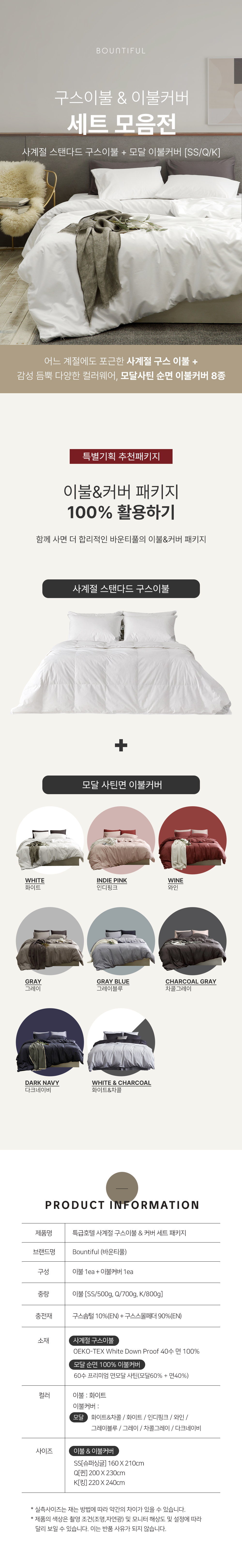 호텔세트 사계절 구스이불+커버 모달 8컬러 순면60수 광폭사틴 SS/Q/K