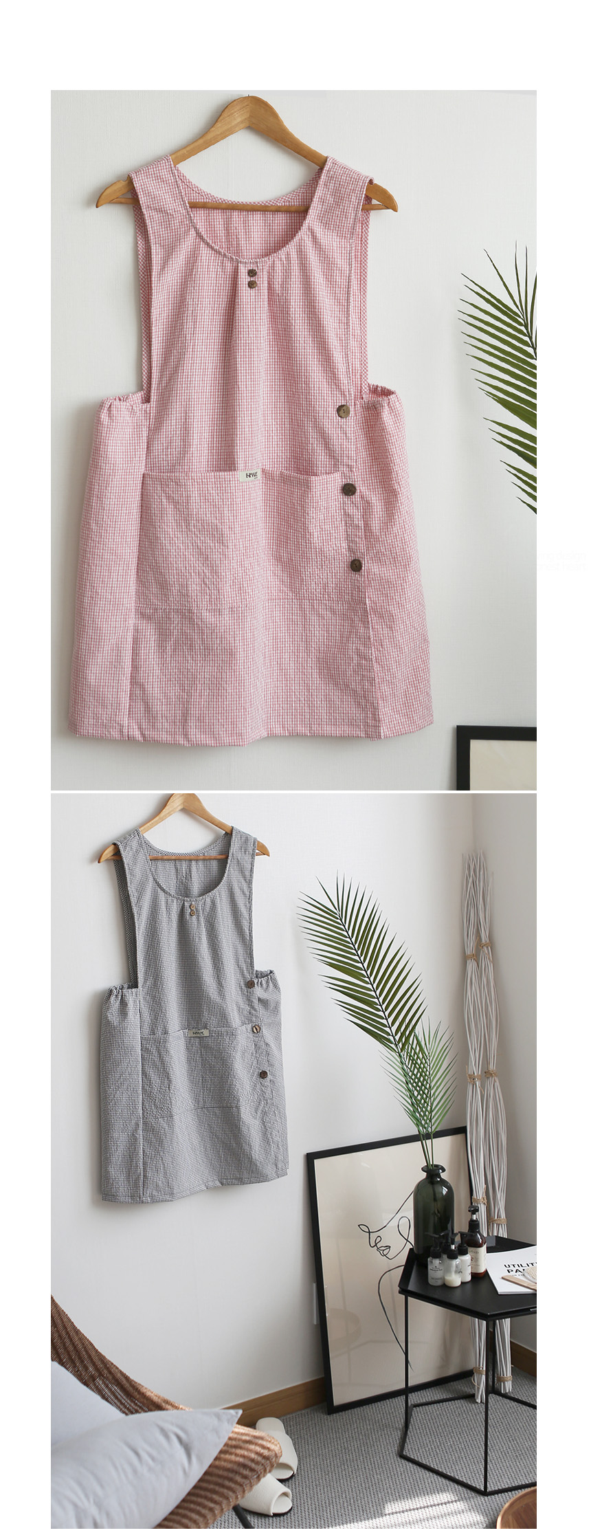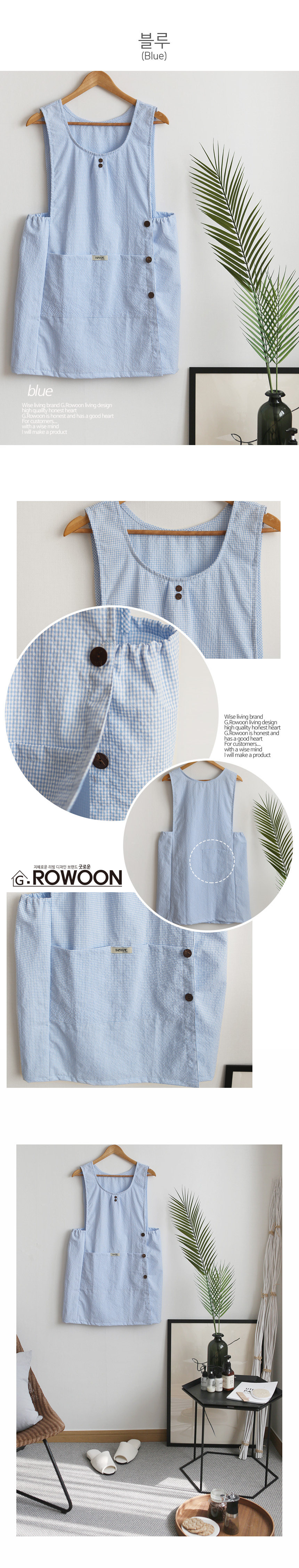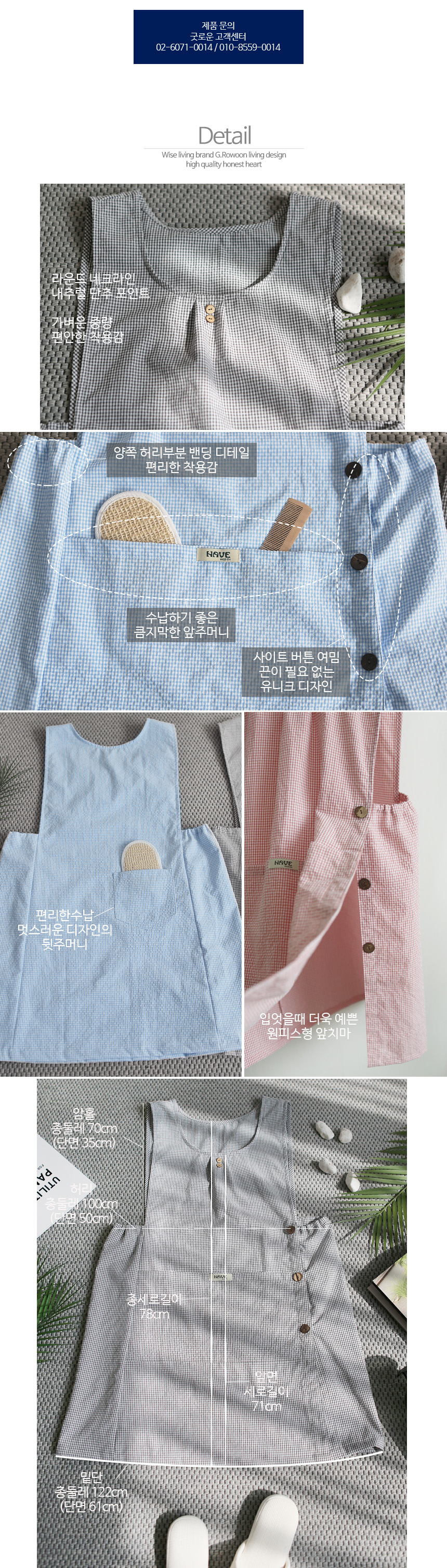 ?[ 시원한 시어서커 면혼방 패브릭 제작 / 사이드 버튼 편리한 원피스형 디자인 / 예쁜디자인 & 컬러 / free 사이즈 / 가볍고 편안한 착용감 / 카페 공방 주방 바리스타 신혼집 선물 앞치마 ]