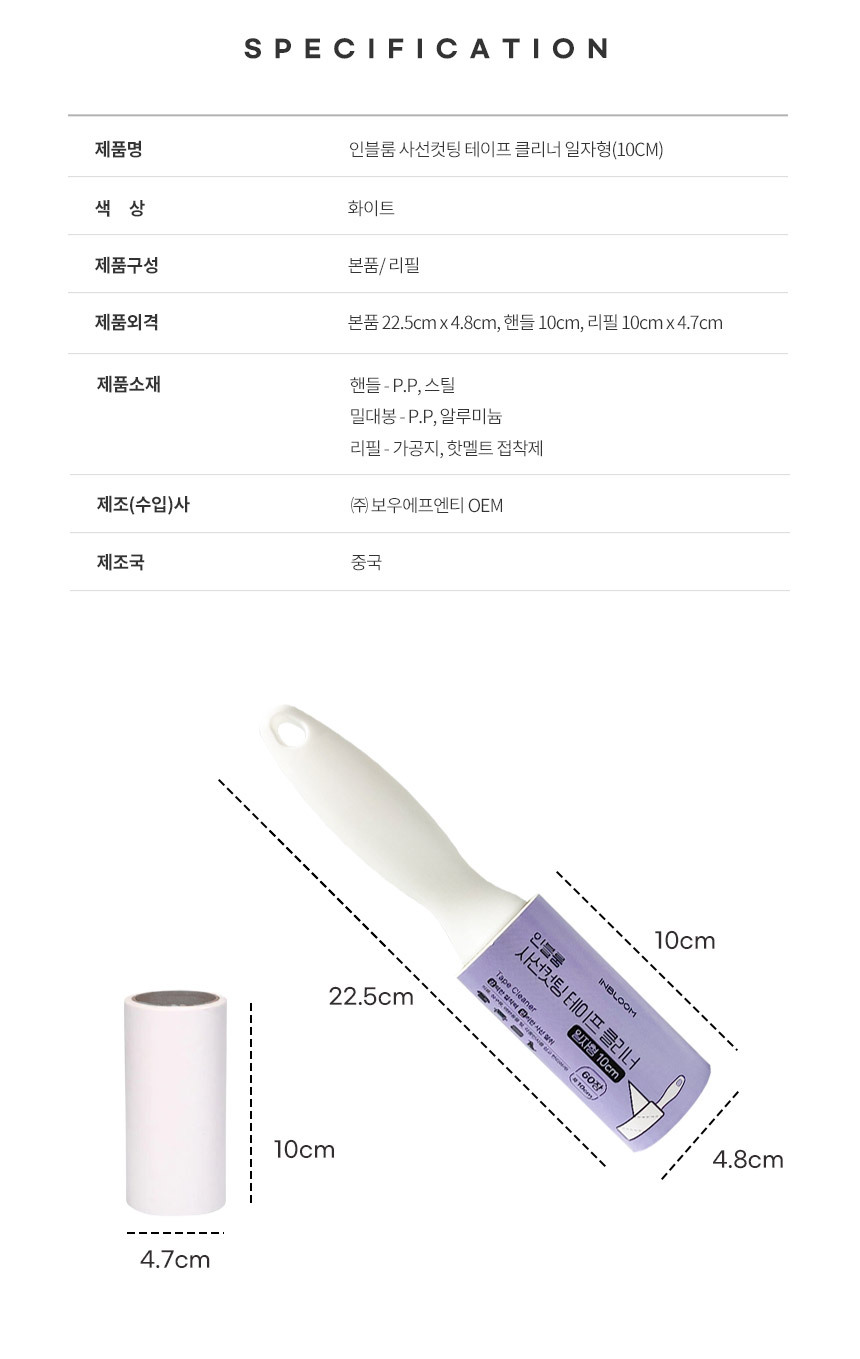 사선컷팅 돌돌이 테이프 클리너 일자형 (10cm)+리필2P