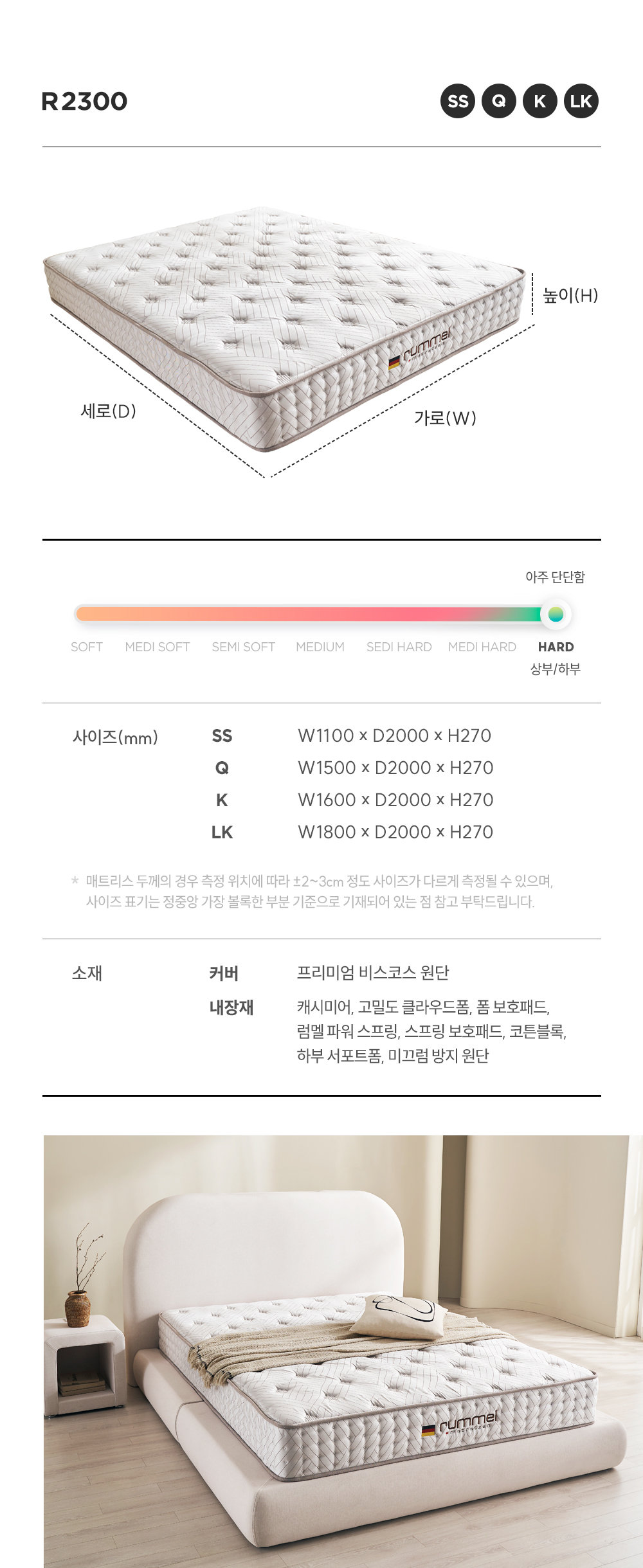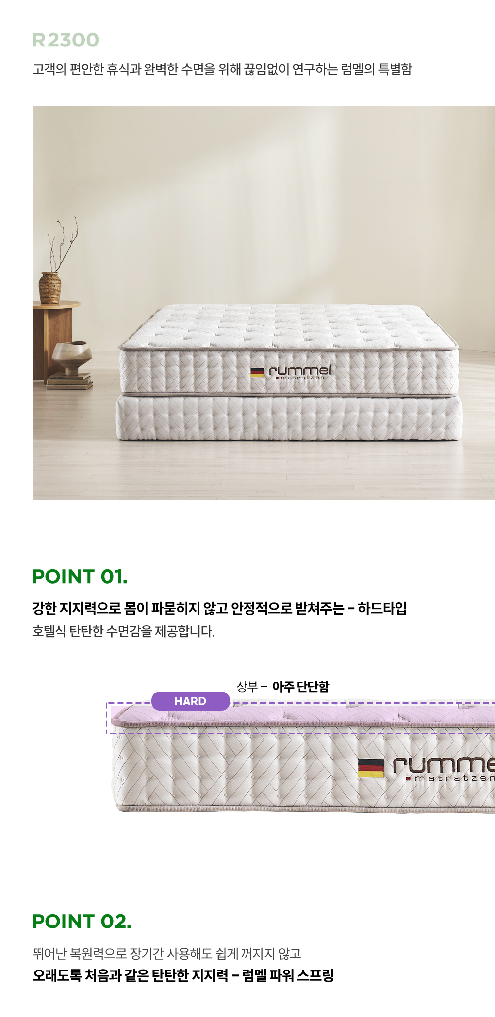 럼멜R2300 딱딱하고 단단한 하드 파워 본넬스프링 타이트탑 침대매트리스 27T