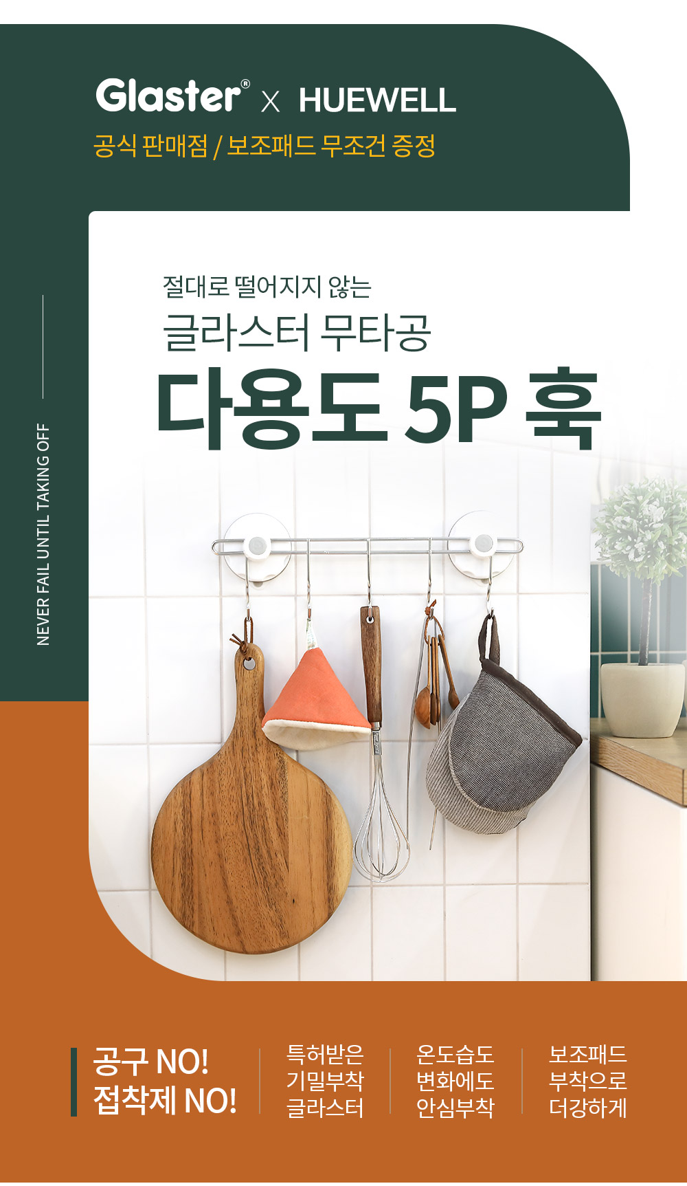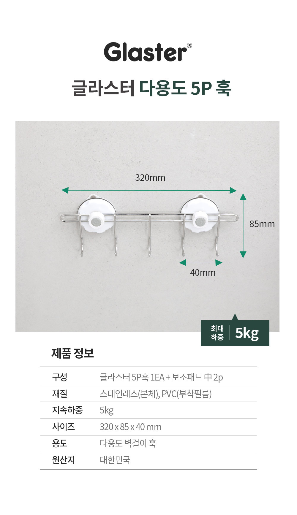 글라스터 스텐 다용도5P훅 후크 걸이 고리 욕실용품