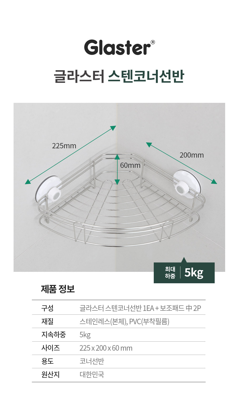 글라스터 스텐 욕실 코너선반 욕실선반