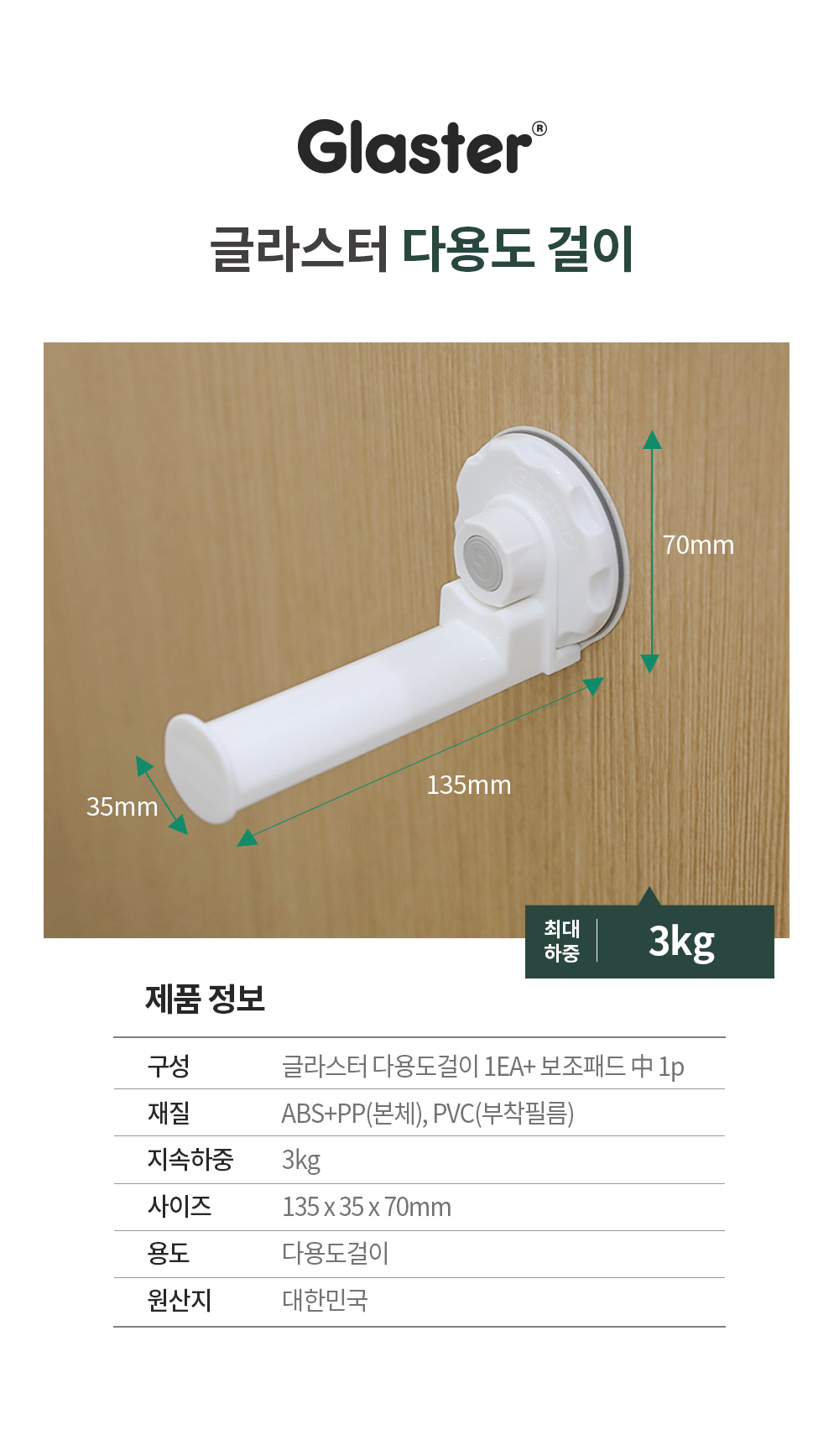 글라스터 다용도걸이 휴지 가방 우산 벽걸이