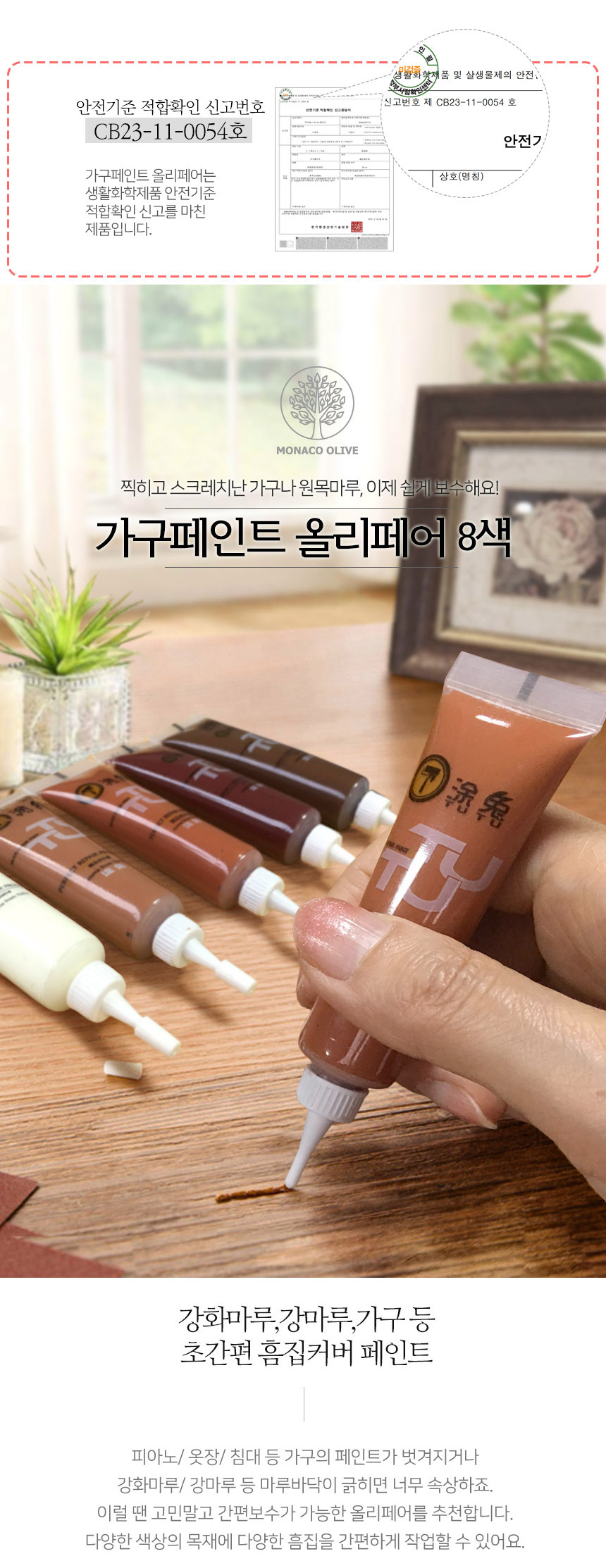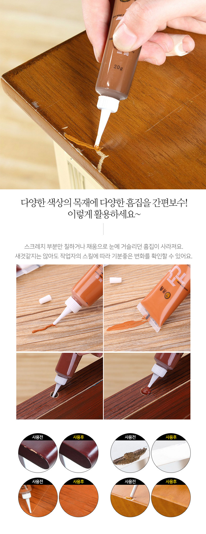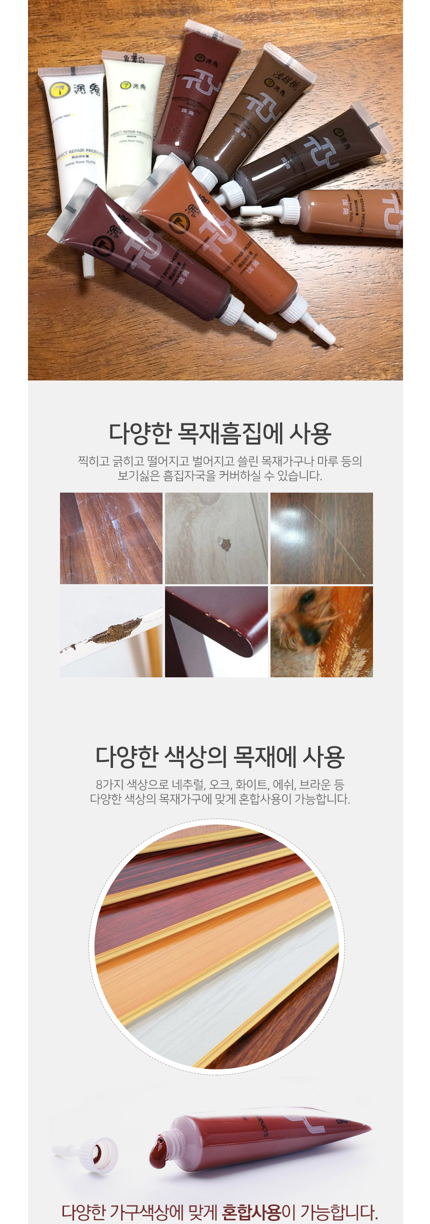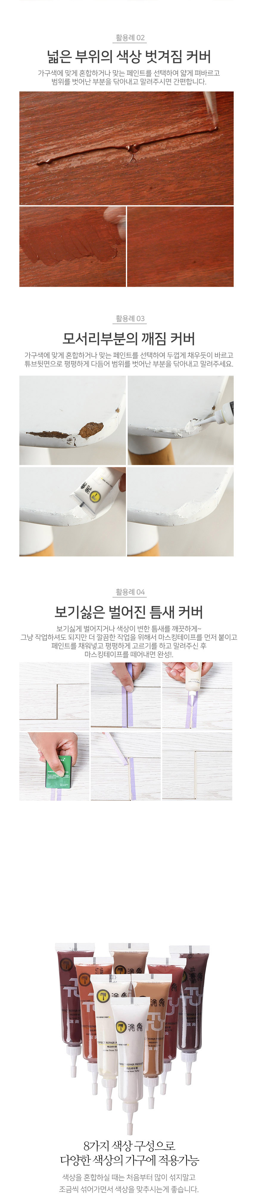[특가 ~2/9]가구 마루 흠집 보수 페인트 8색 풀세트