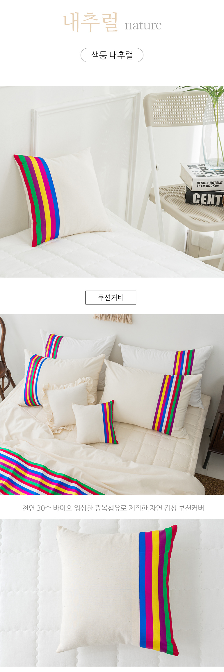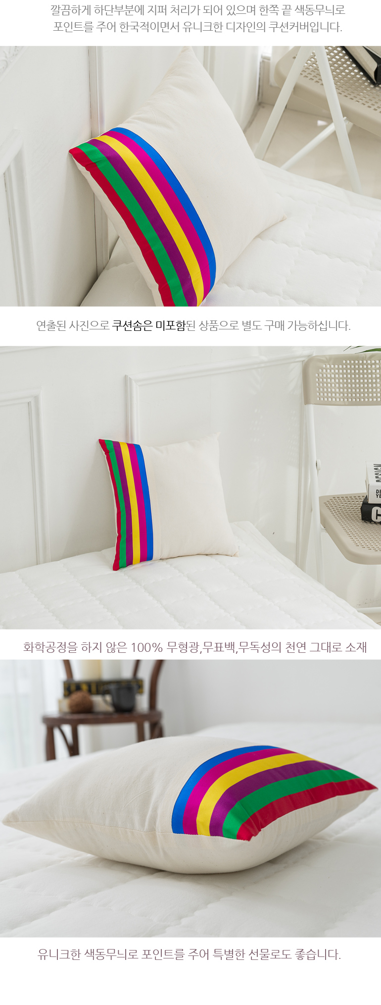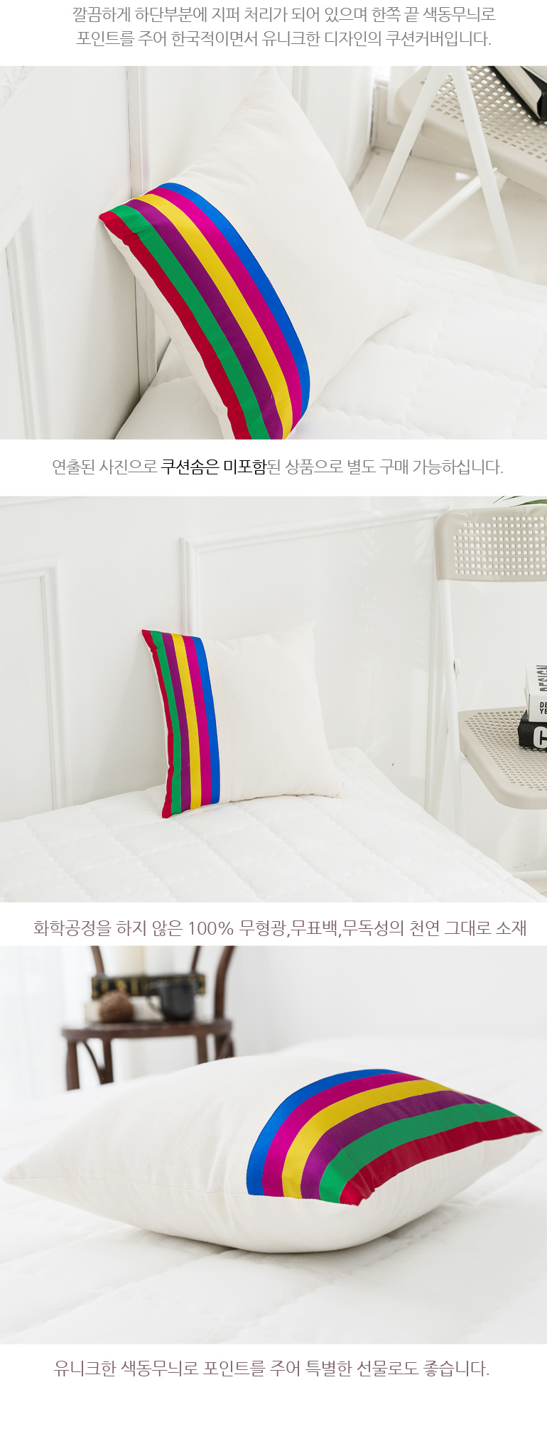 색동 광목 바이오워싱 30수순면 50X50CM쿠션커버2컬러