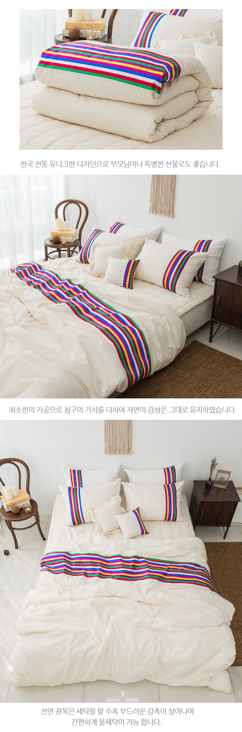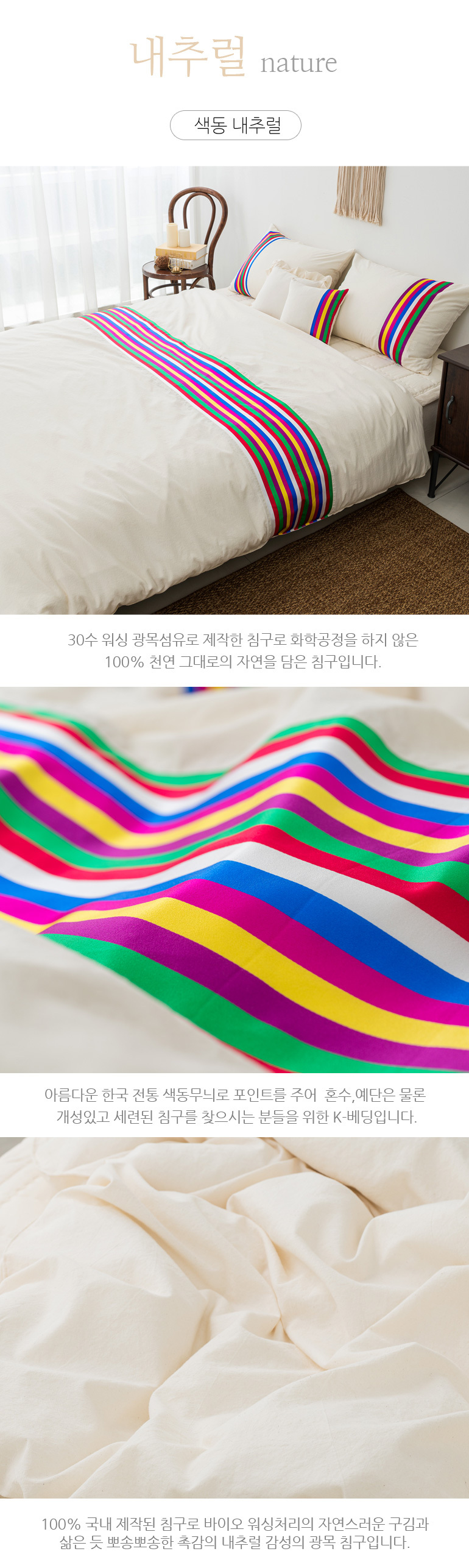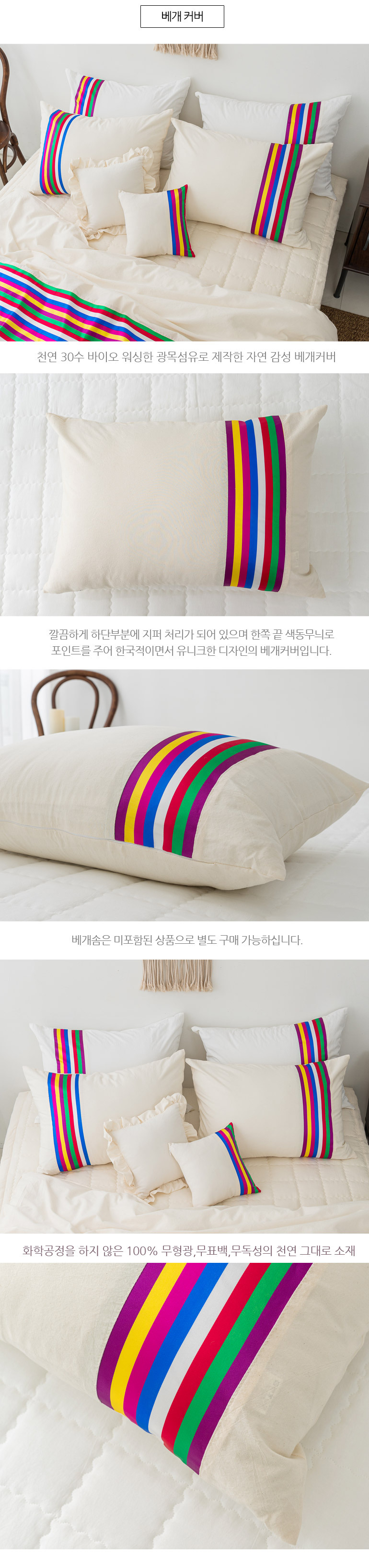 색동 바이오워싱광목 30수면 호텔이불베개세트Q내추럴