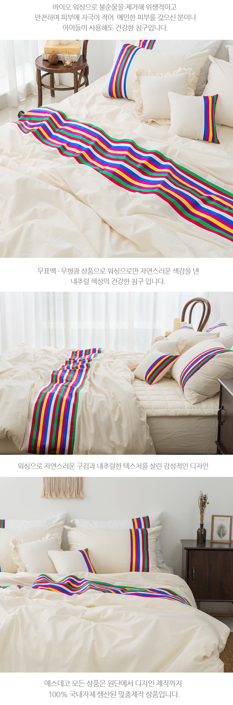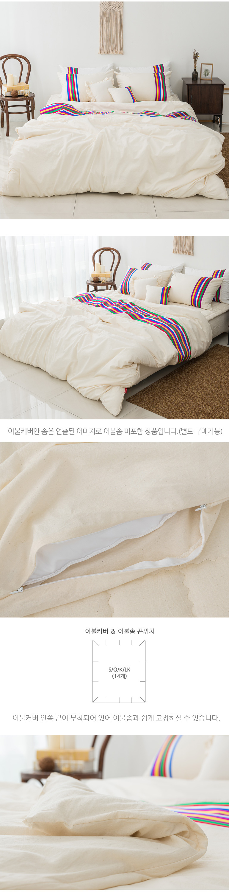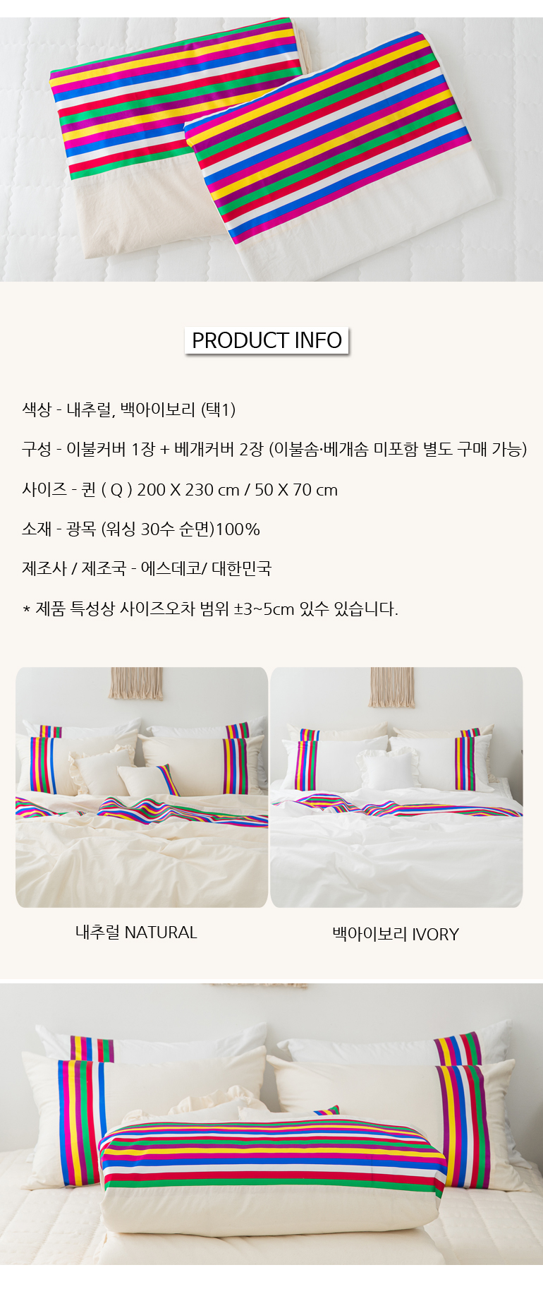 색동 바이오워싱광목 30수면 호텔이불베개세트Q내추럴