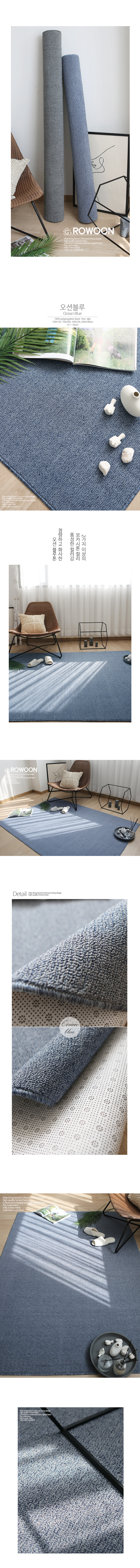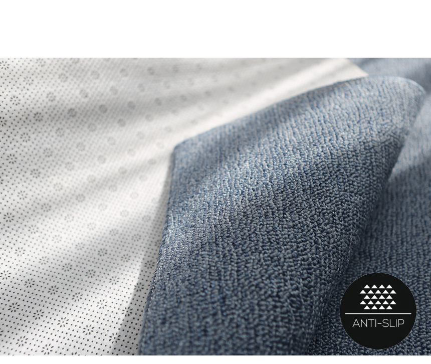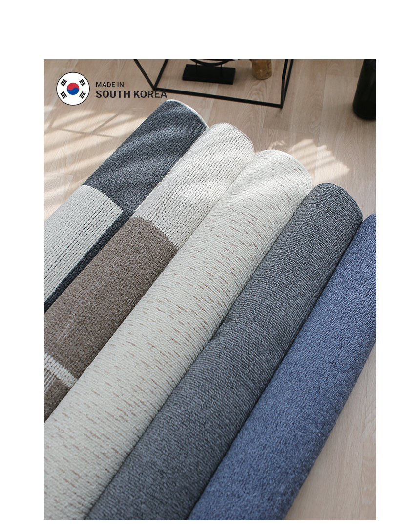 [ 100% 폴리프로필렌 제작 / 가벼운 중량 편리한 관리 및 보관 / 루프타입카페트 뛰어난 내구성 / 풍성한 보카시 컬러감 / 먼지없이 사계절 쓰는 실용적인 카페트 / 뒷면 미끄럼 방지 ]
