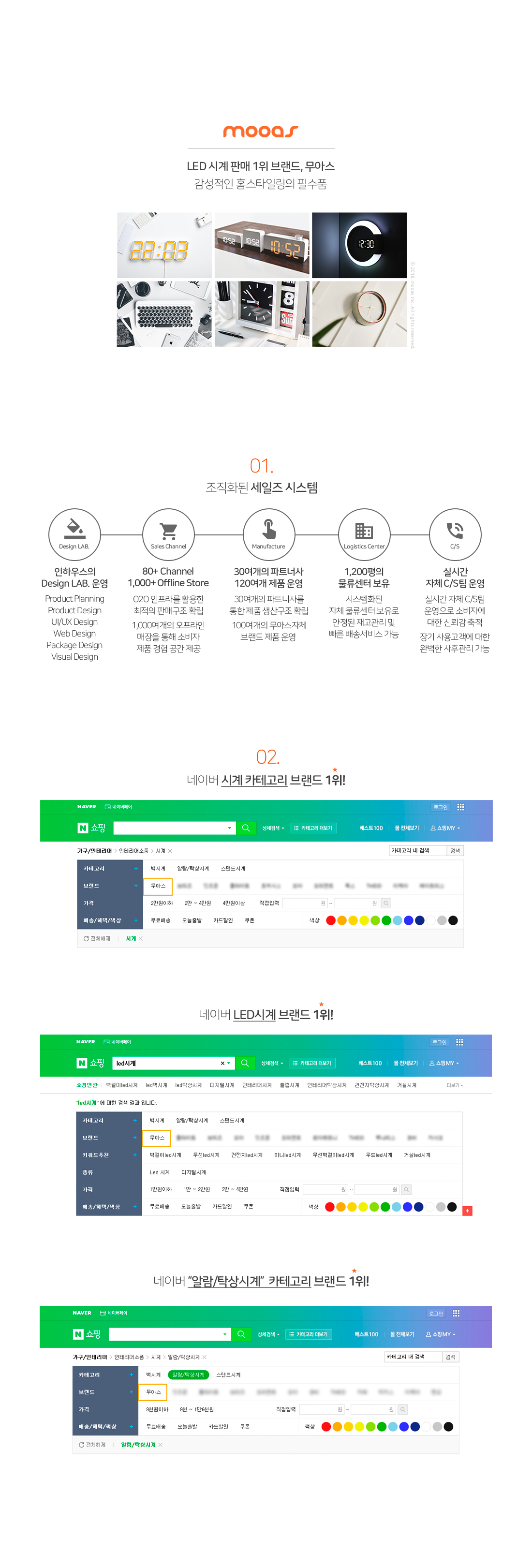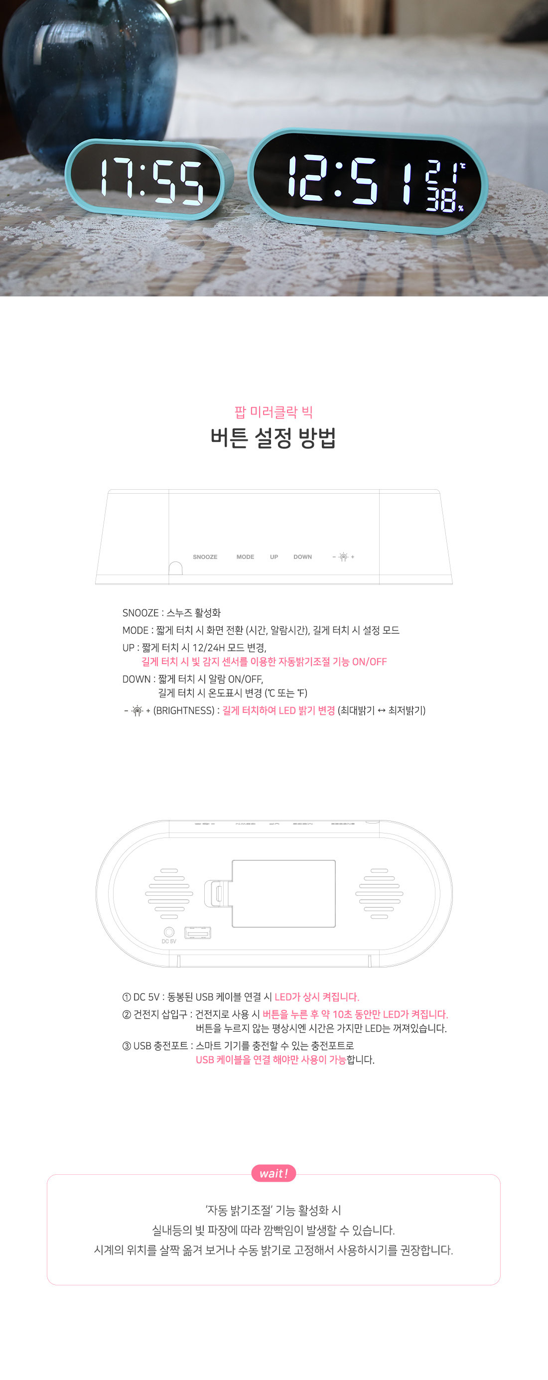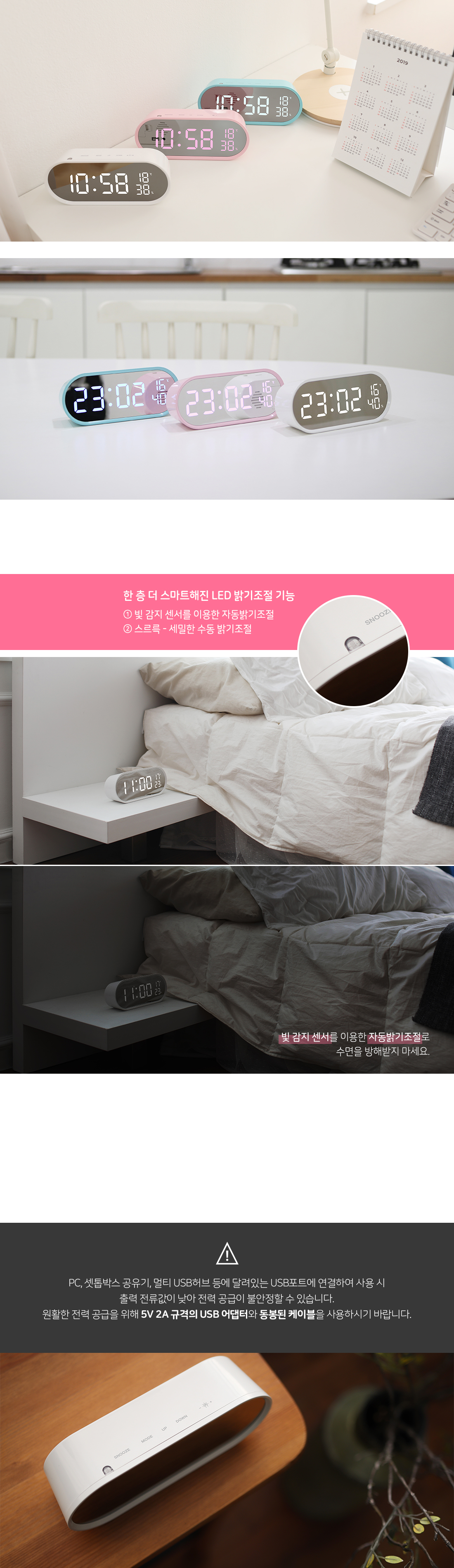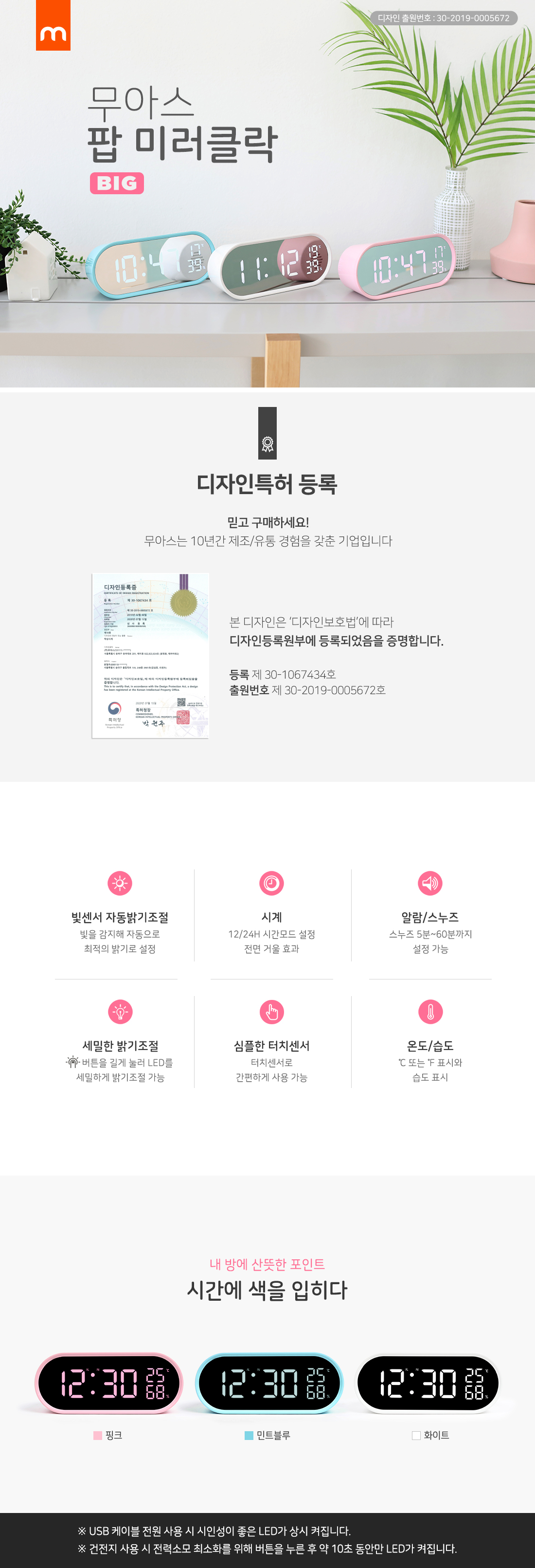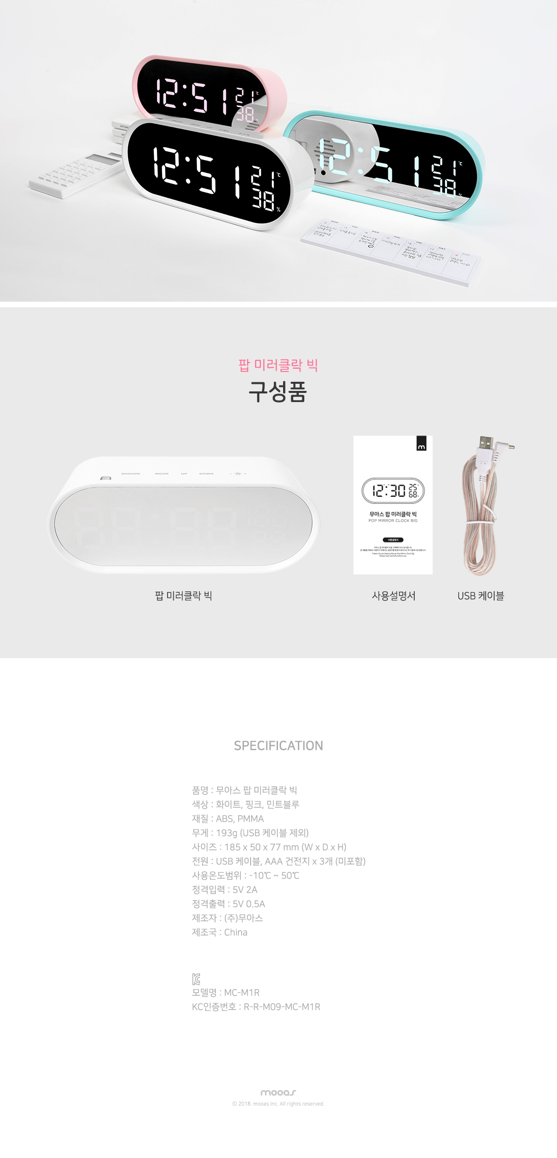[특가 ~2/9]mooas 무소음 LED탁상시계 온도 습도 팝미러클락 빅 3colors