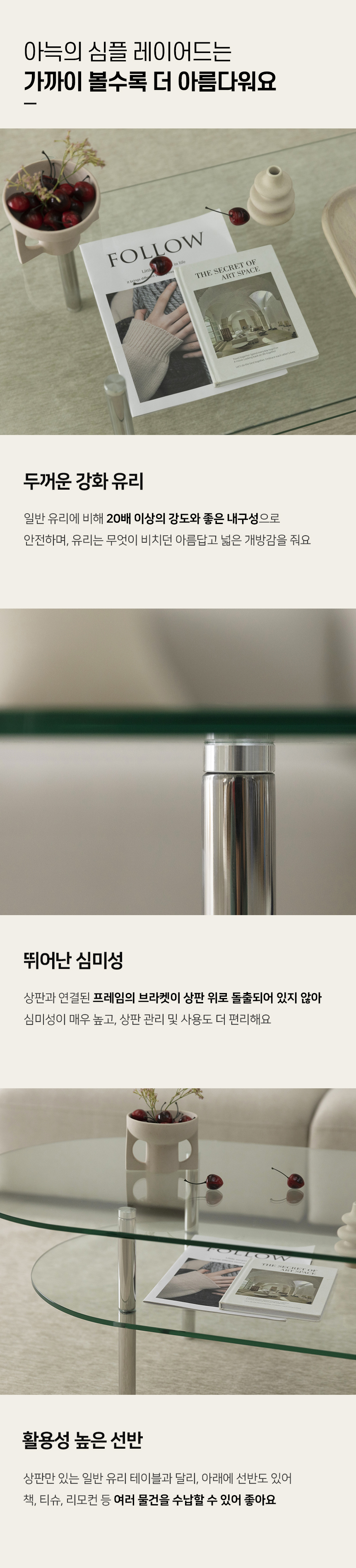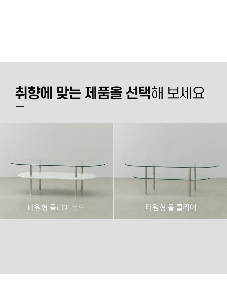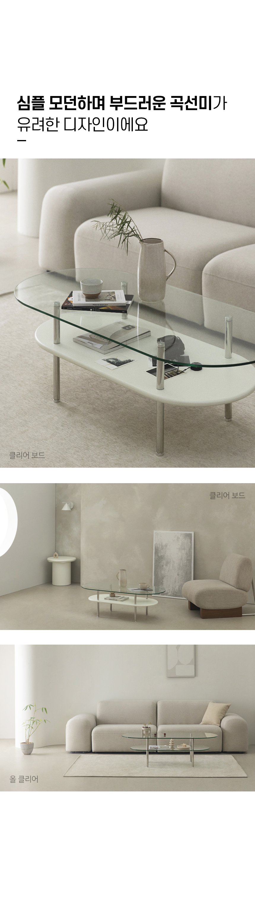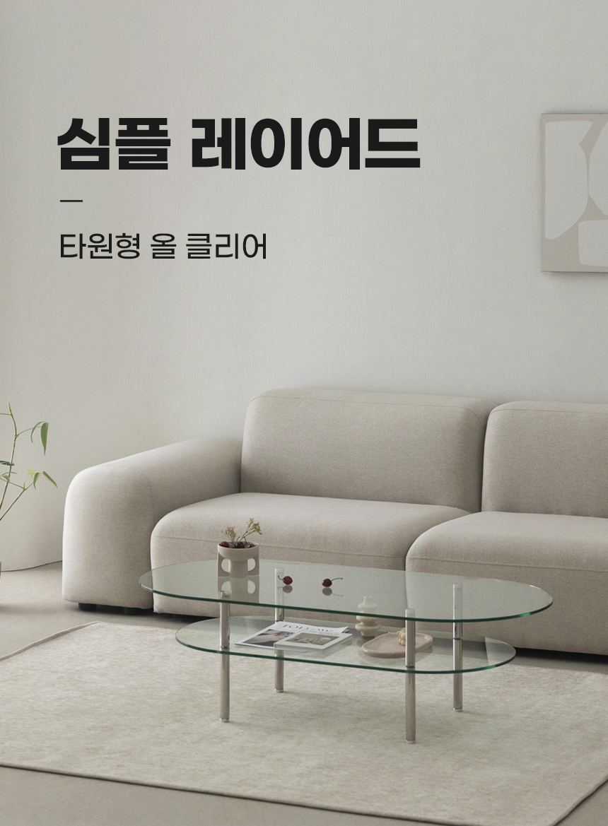 아늑 심플 레이어드 타원형 강화 유리 거실 테이블(올 클리어)