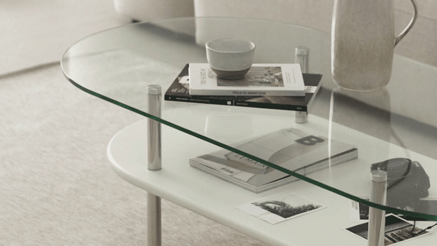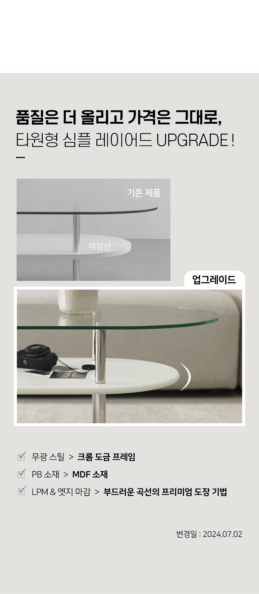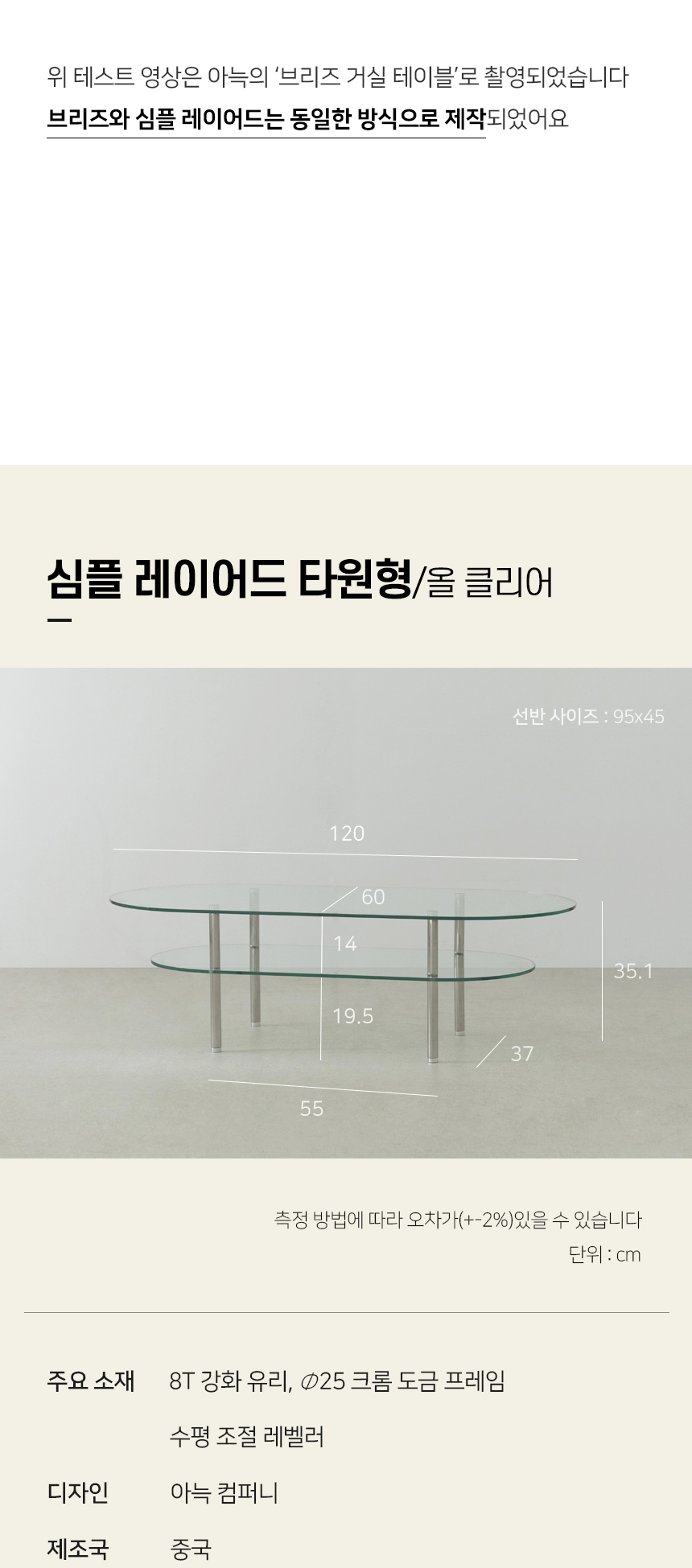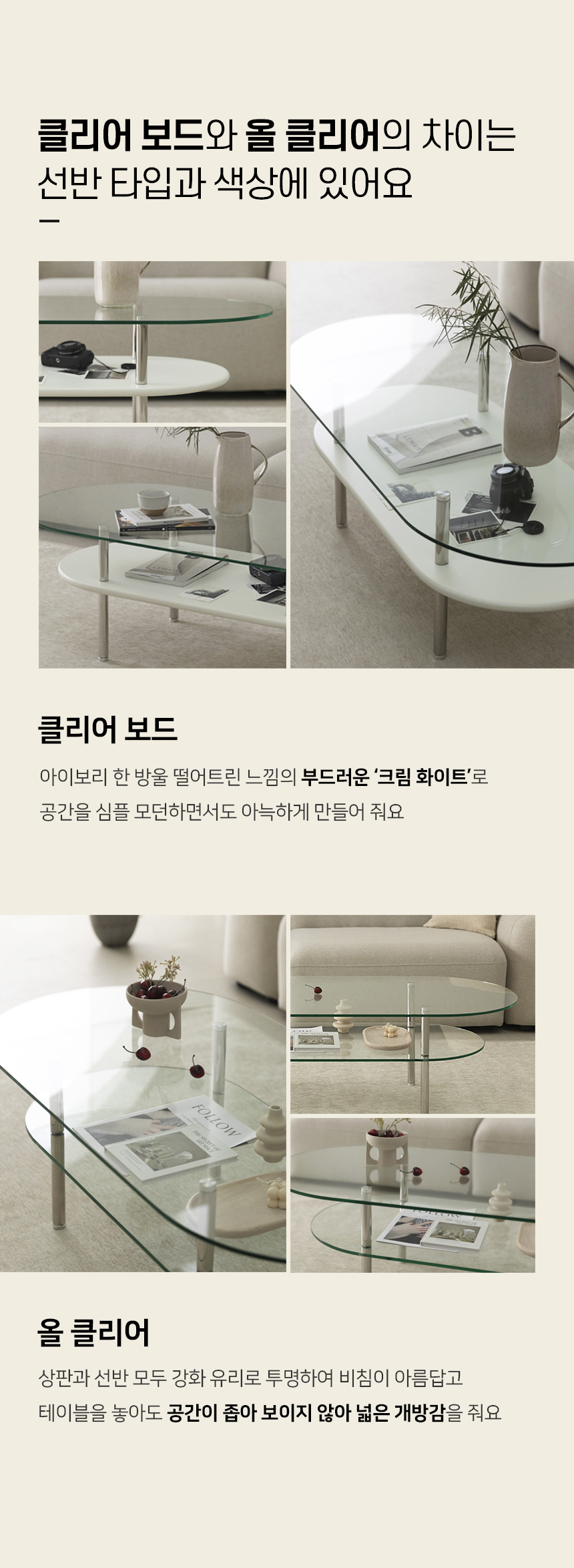 아늑 심플 레이어드 타원형 강화 유리 거실 테이블(올 클리어)