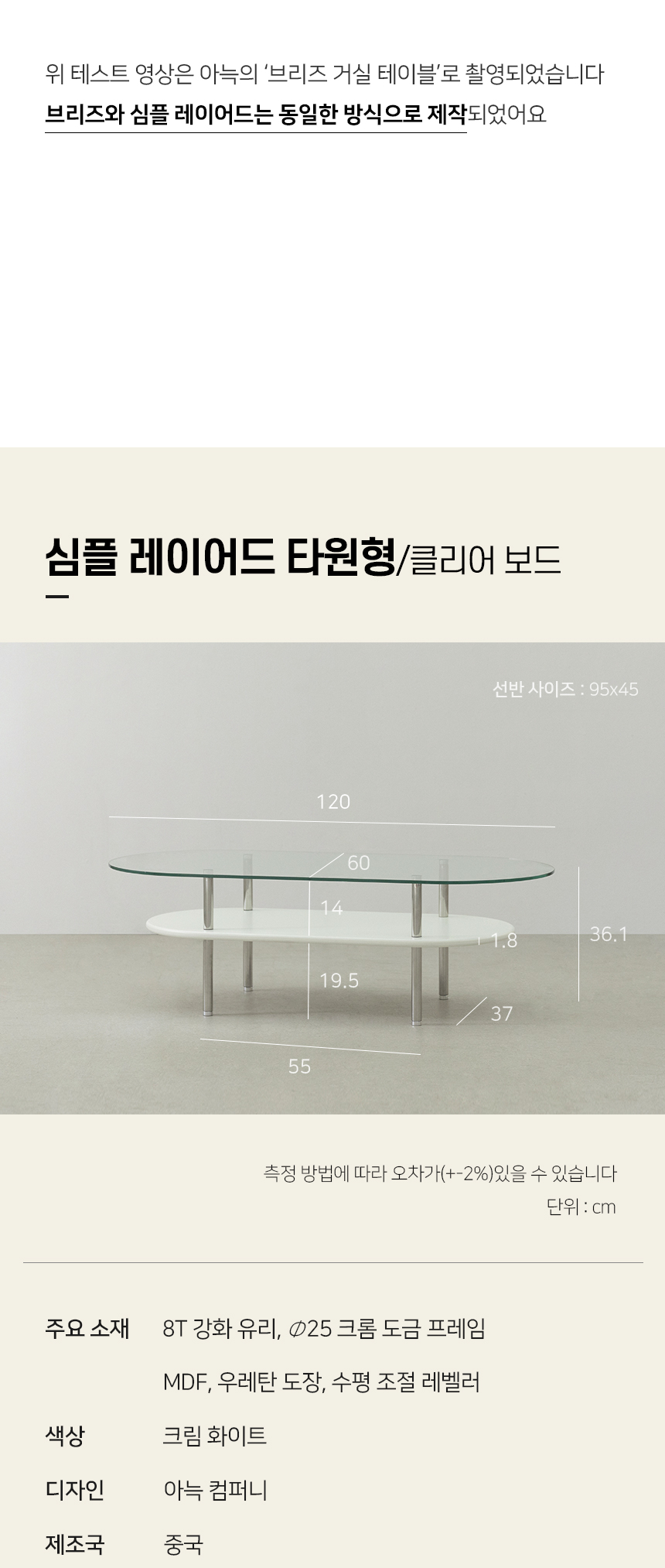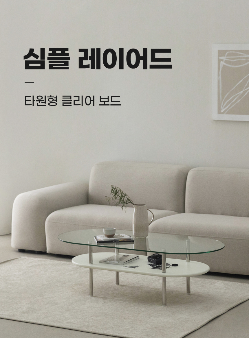아늑 심플 레이어드 타원형 강화 유리 거실 테이블(클리어/보드)