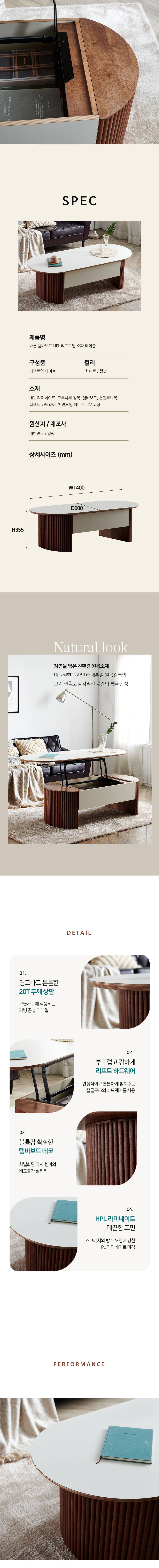 [특가 ~2/9]밀랑 바른 템바보드 HPL 라미네이트 원목 리프트업 1400 소파 거실 테이블