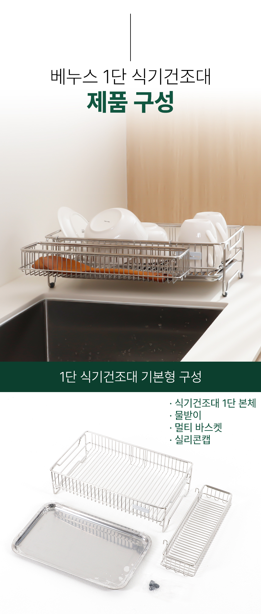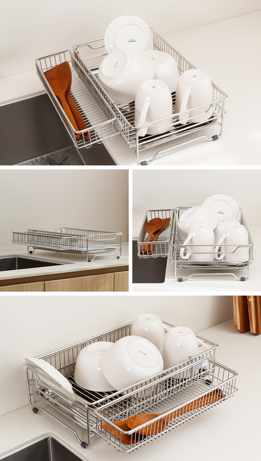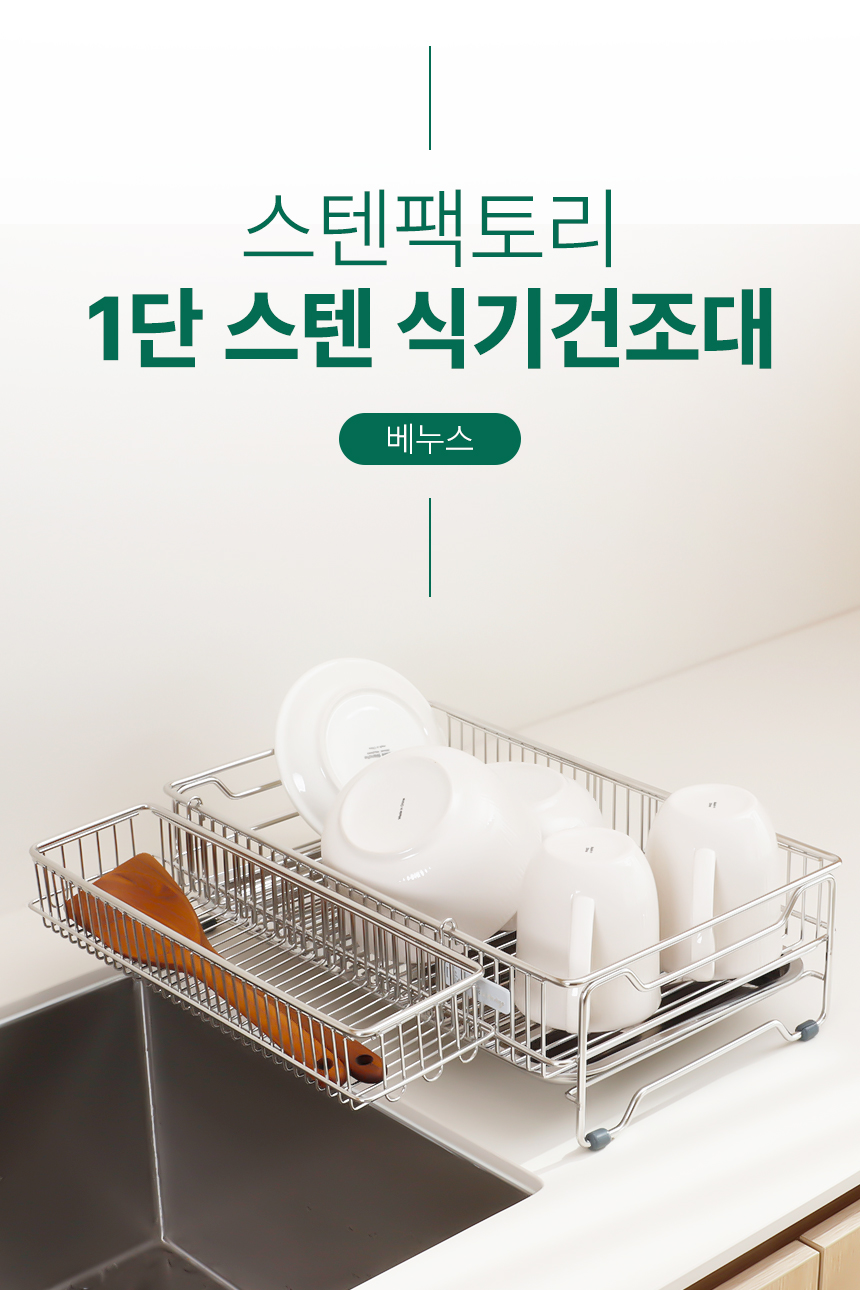스텐 컴팩트 식기건조대1단 쟁반형