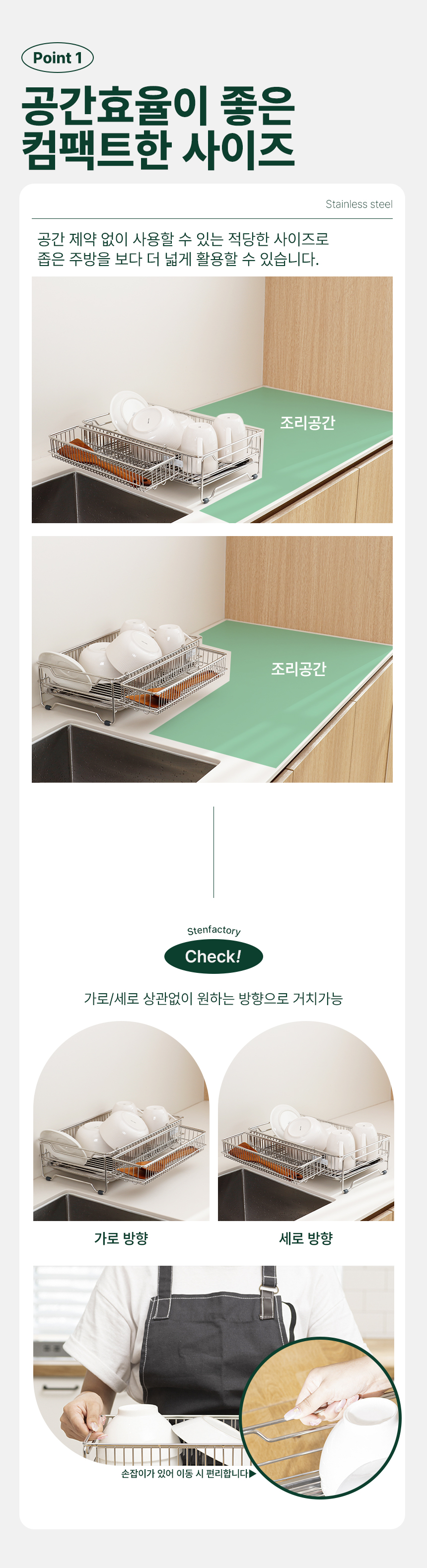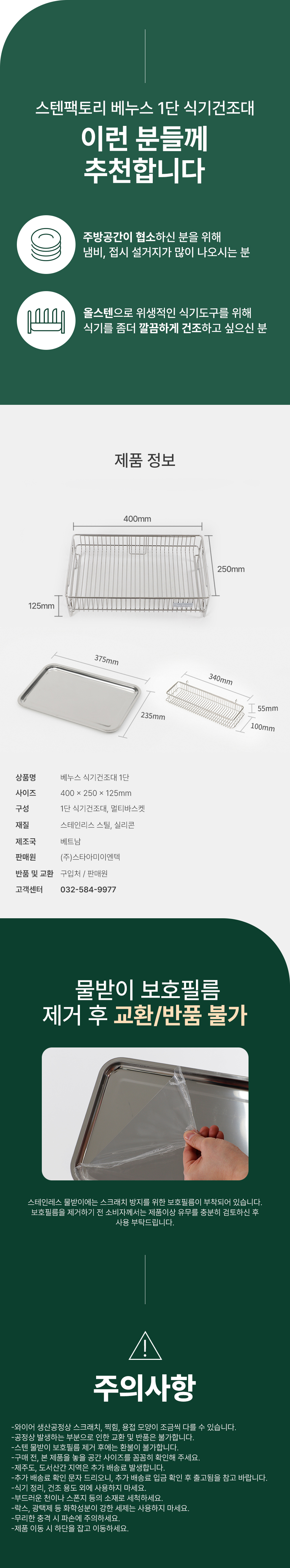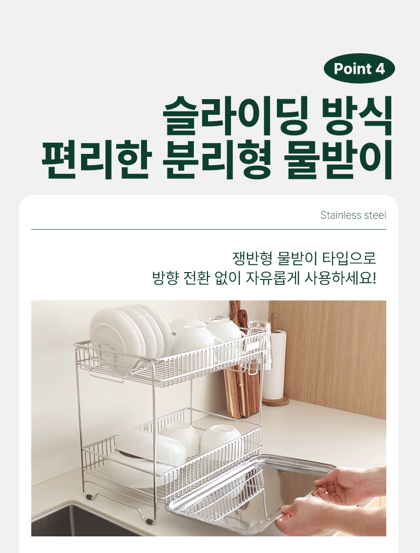스텐 컴팩트 식기건조대1단 쟁반형