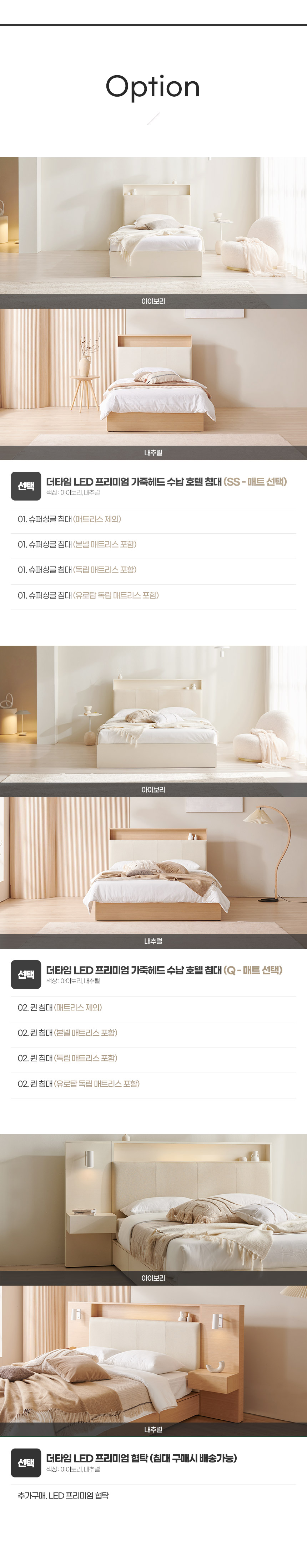 더타임 LED 프리미엄 가죽헤드 수납 호텔 침대 SS Q (매트선택)