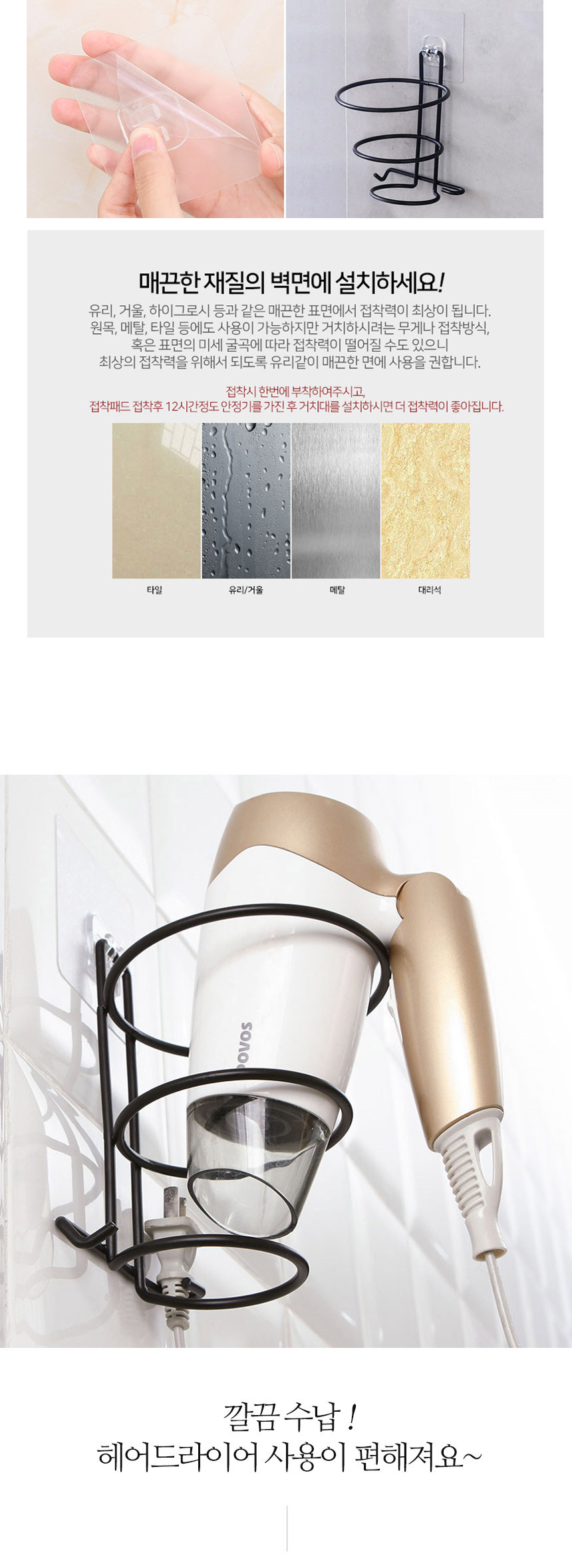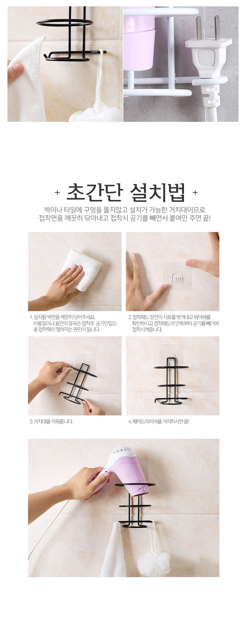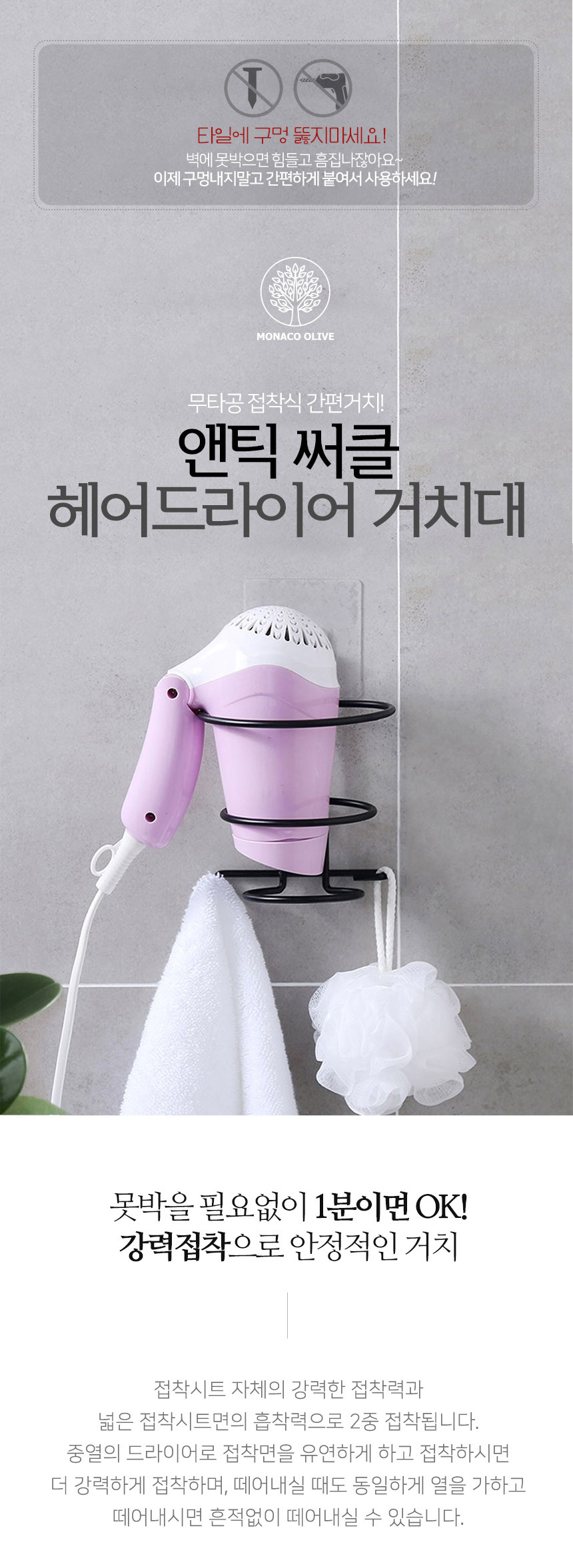 무타공 앤틱 써클 드라이기 거치대 홀더