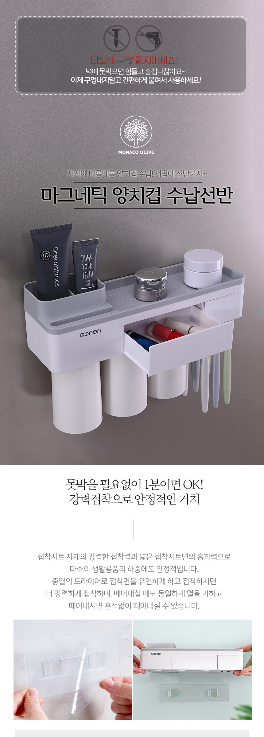 무타공 마그네틱 양치컵 욕실 수납 정리 선반