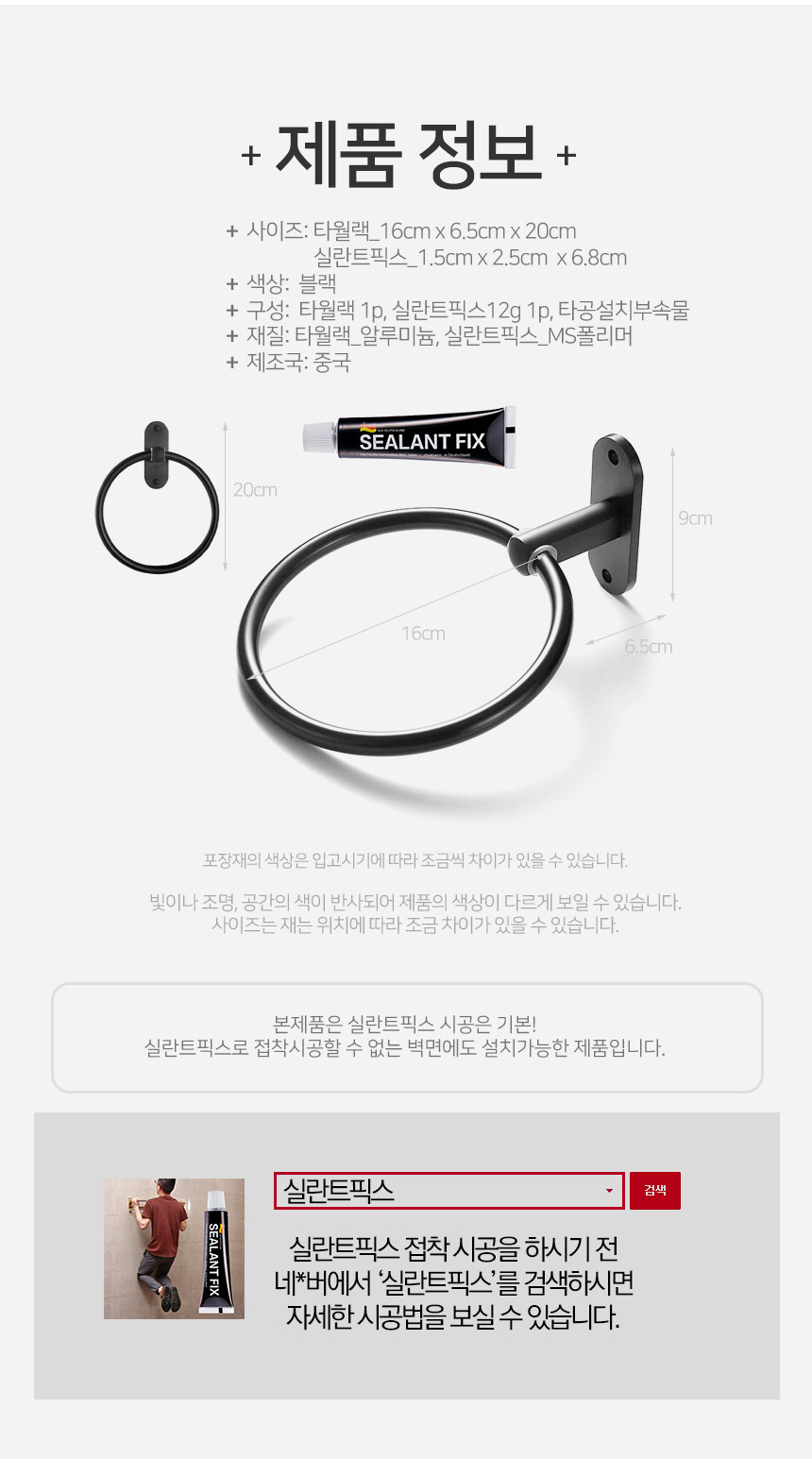 무타공 메탈라인 올블랙 링타월걸이