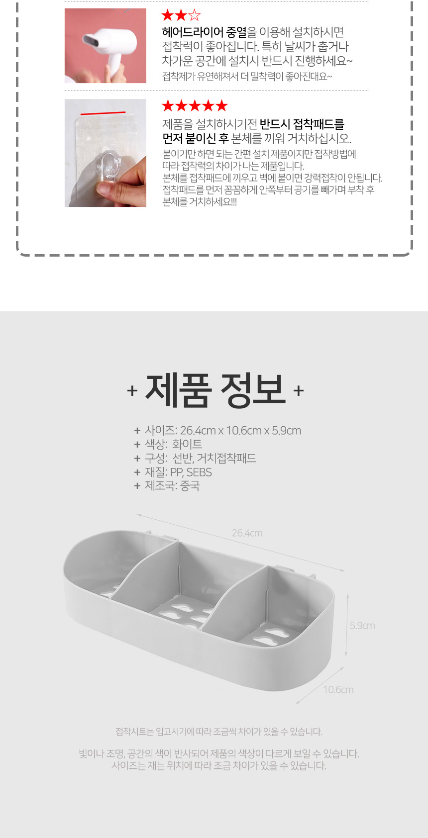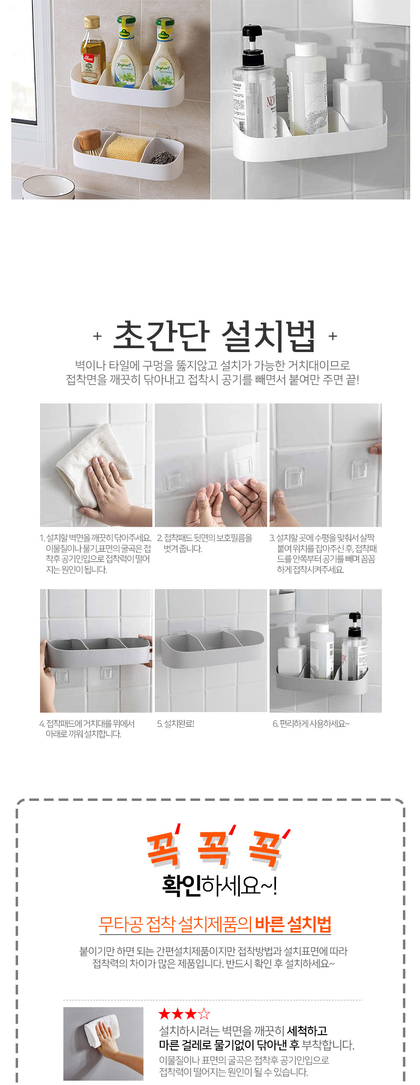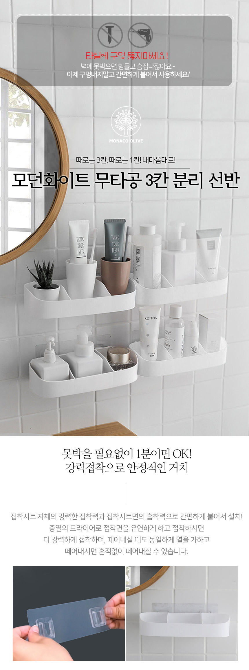 무타공 모던화이트 3칸분리 다용도 선반