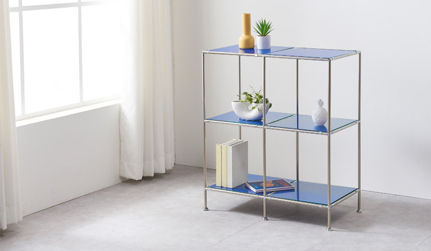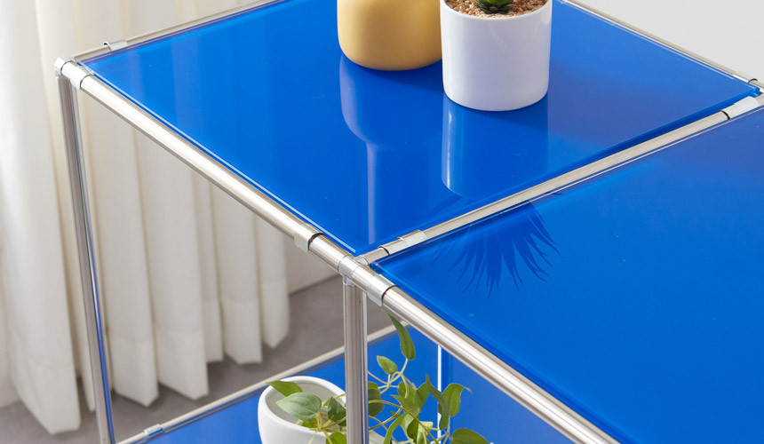 : 스테일레스 파이프 (15mm), 강화유리(8mm), 컬러 시트지