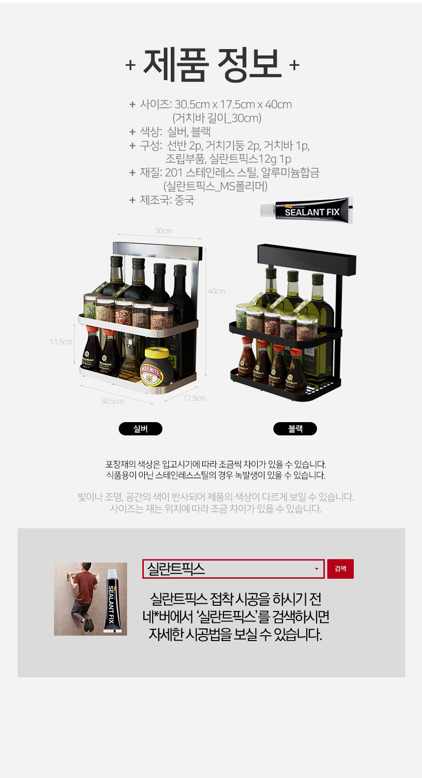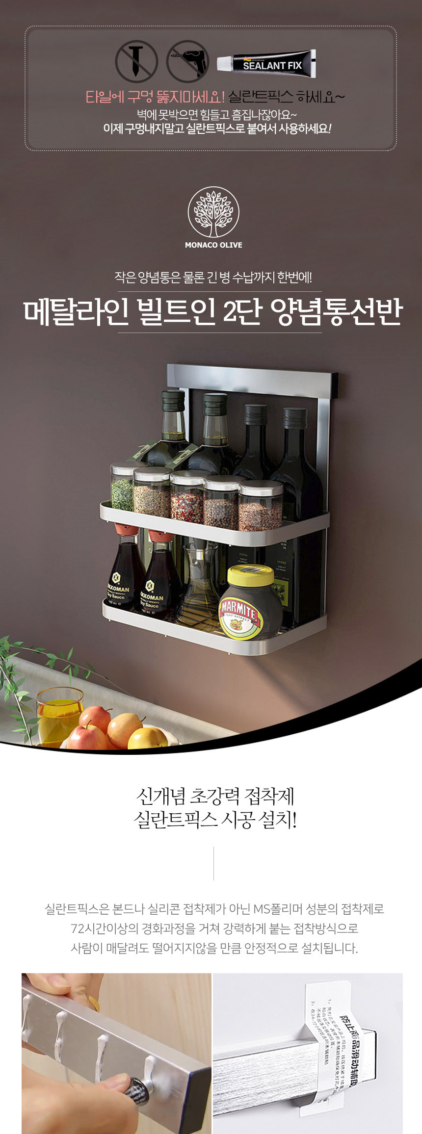 메탈라인 빌트인 2단 양념통 선반 MTK-700