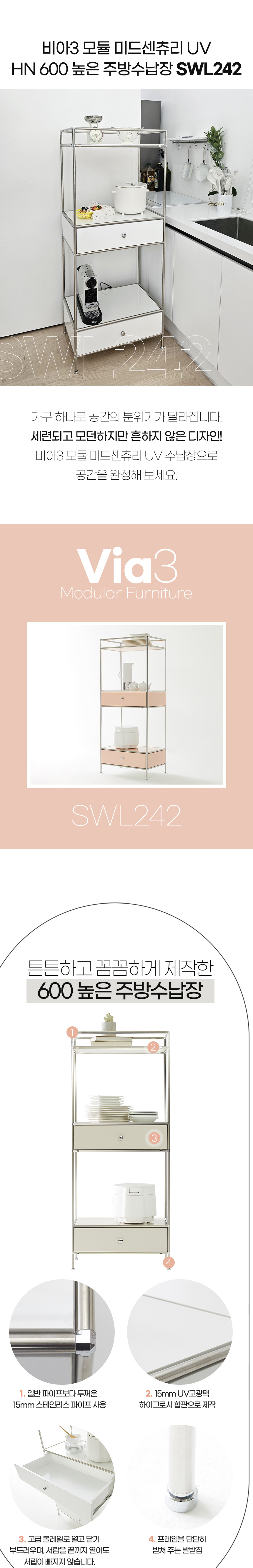비아3 모듈 미드센츄리 UV HN 600 높은 주방수납장 SWL242C