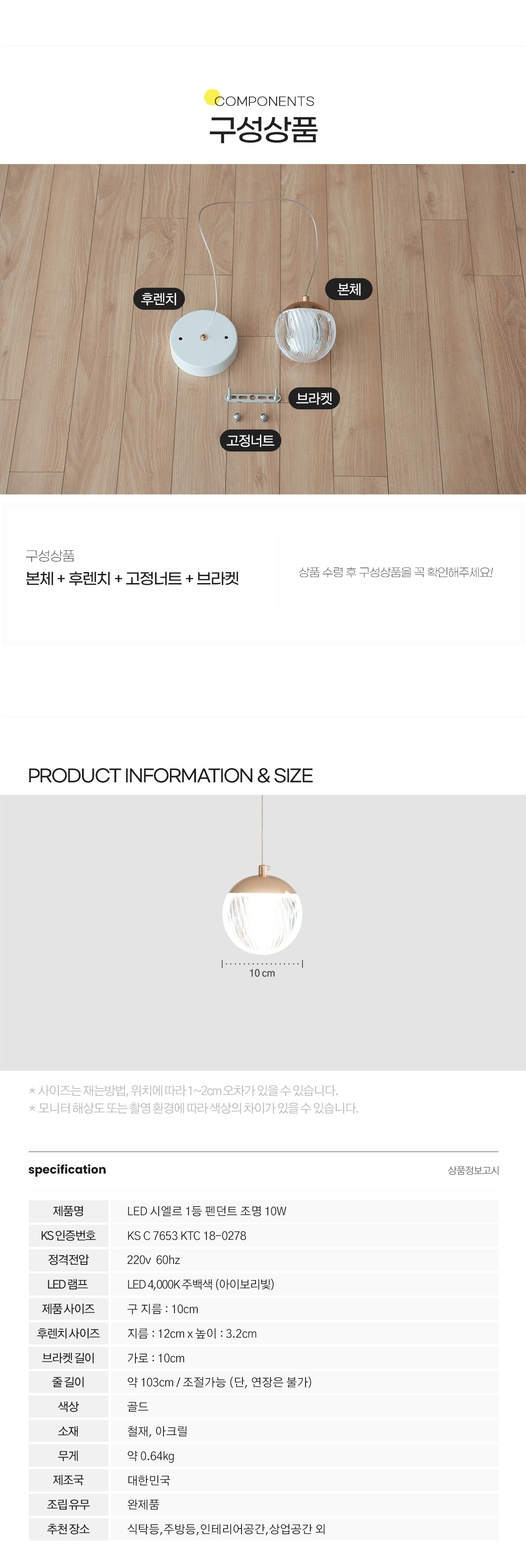 LED 시엘르 1등 식탁등 식탁조명 10W