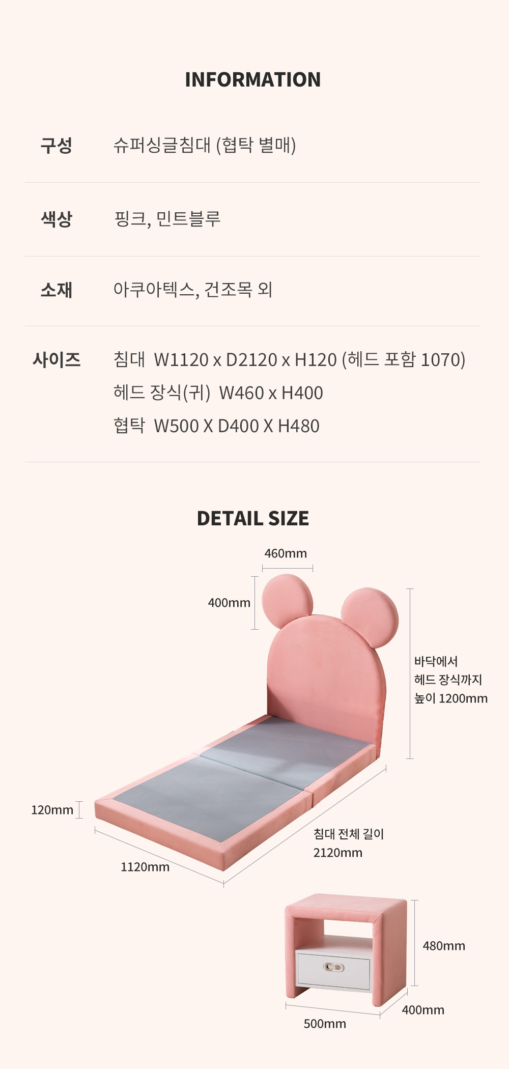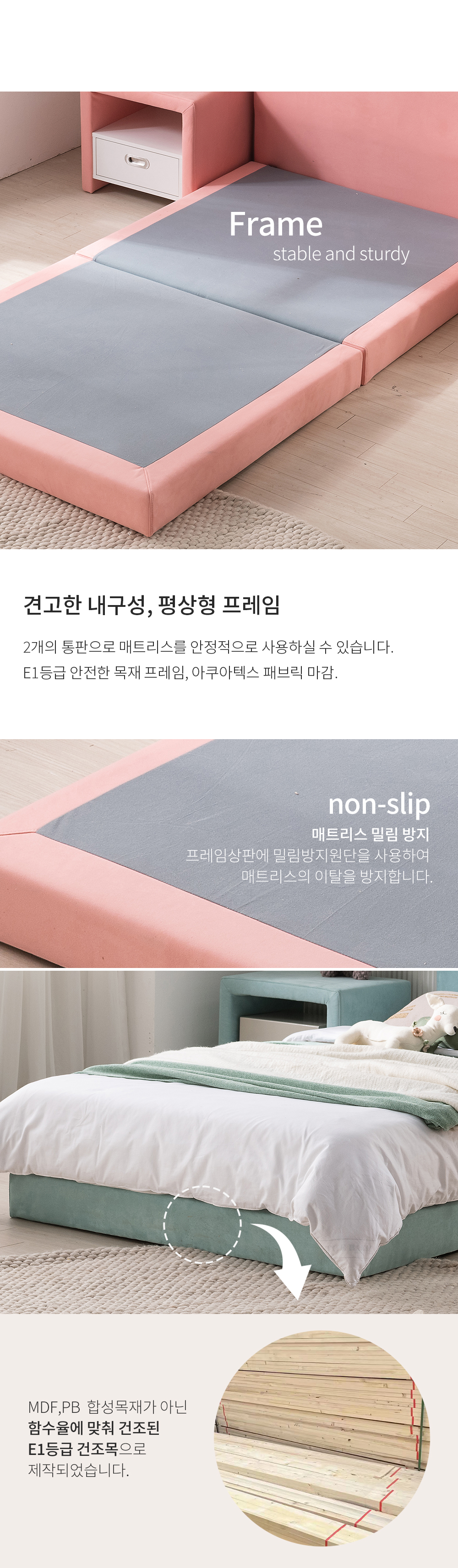 우아미가구 미키 저상형 슈퍼싱글 아쿠아텍스 평상형 침대 (SS)
