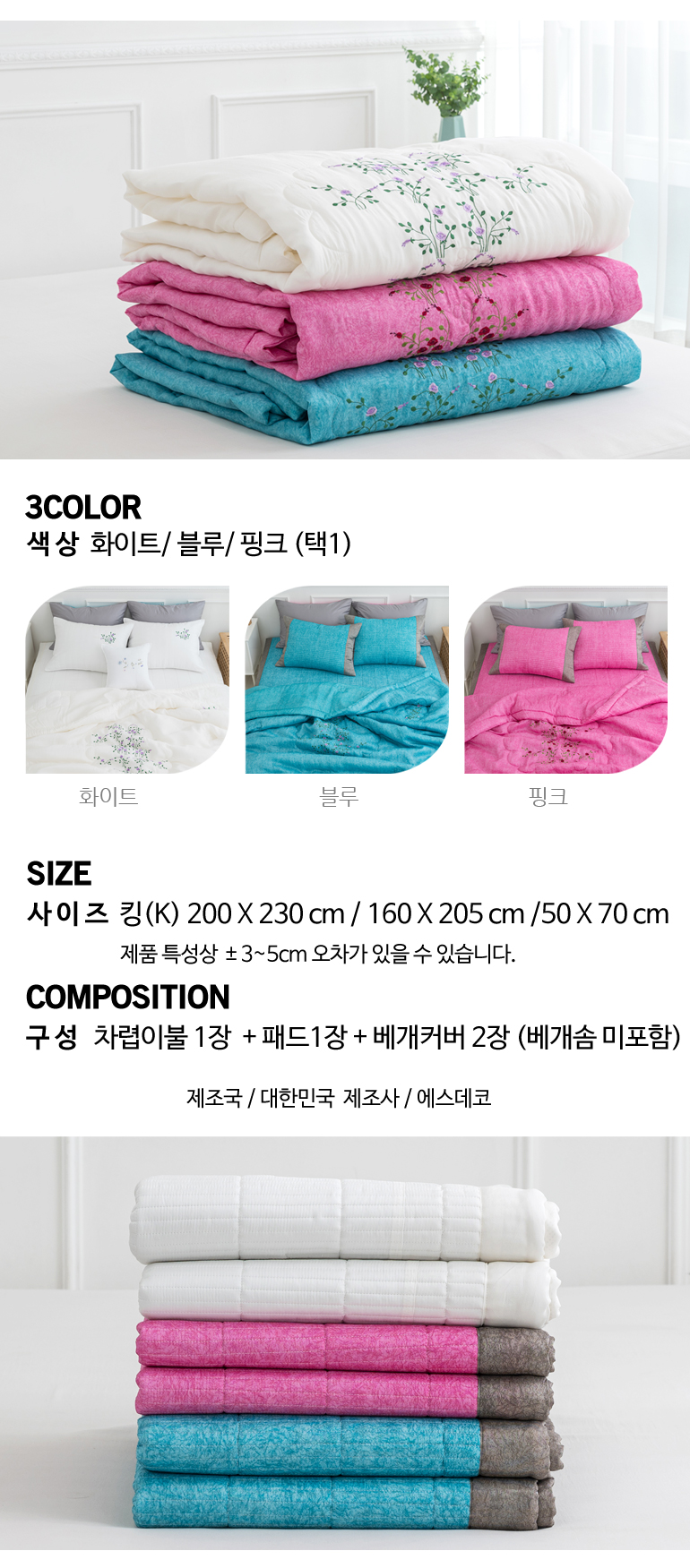 풍기인견 산뜻 청량 국내산 여름차렵패드세트 3컬러K