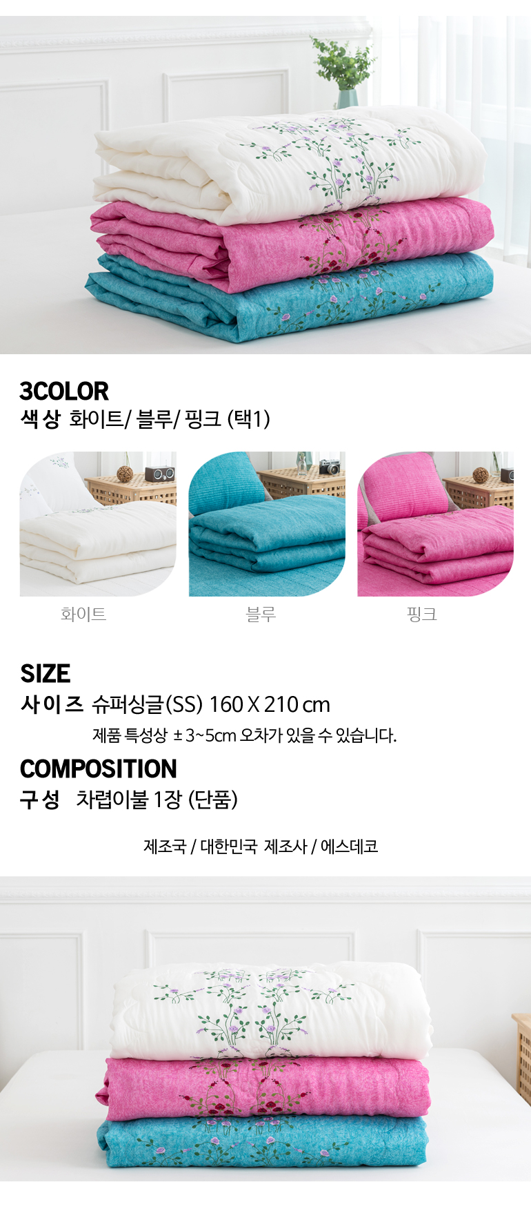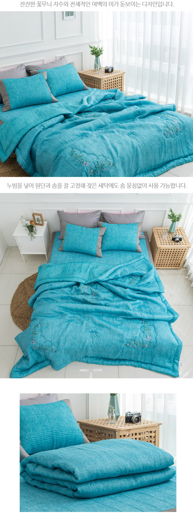 풍기인견 산뜻 청량 국내산 자수차렵여름이불SS 블루