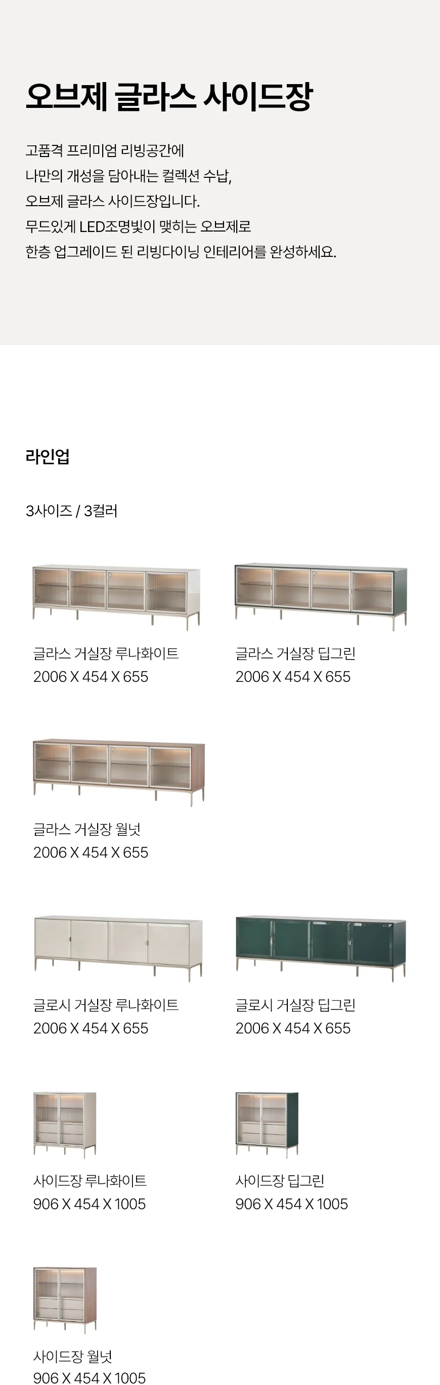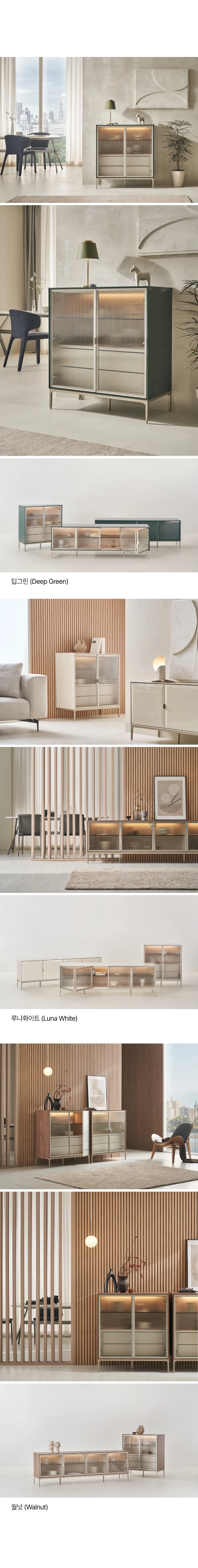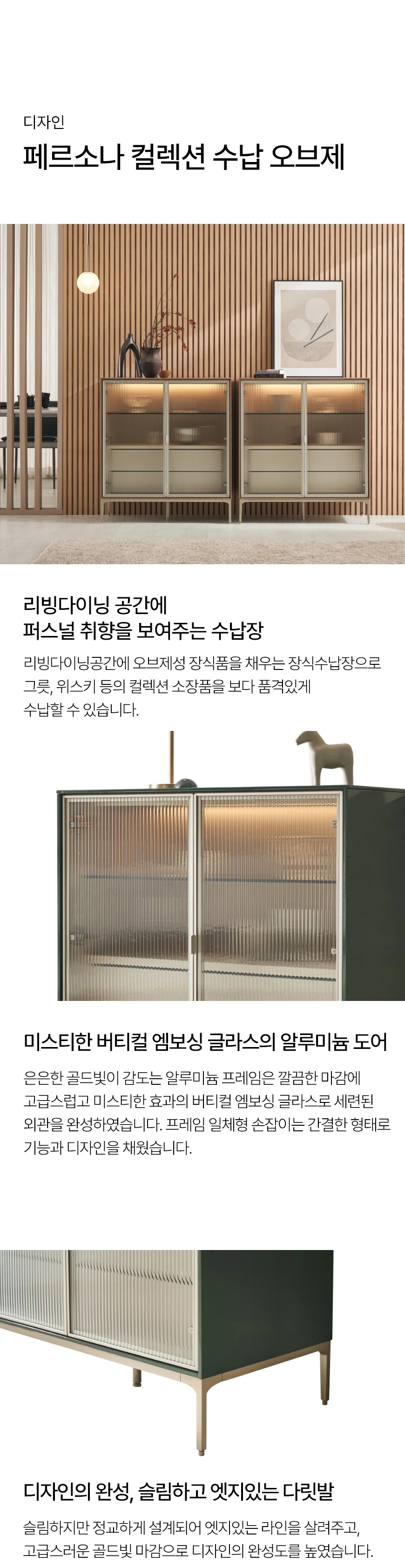오브제 글라스 사이드장 루나화이트/딥그린 900