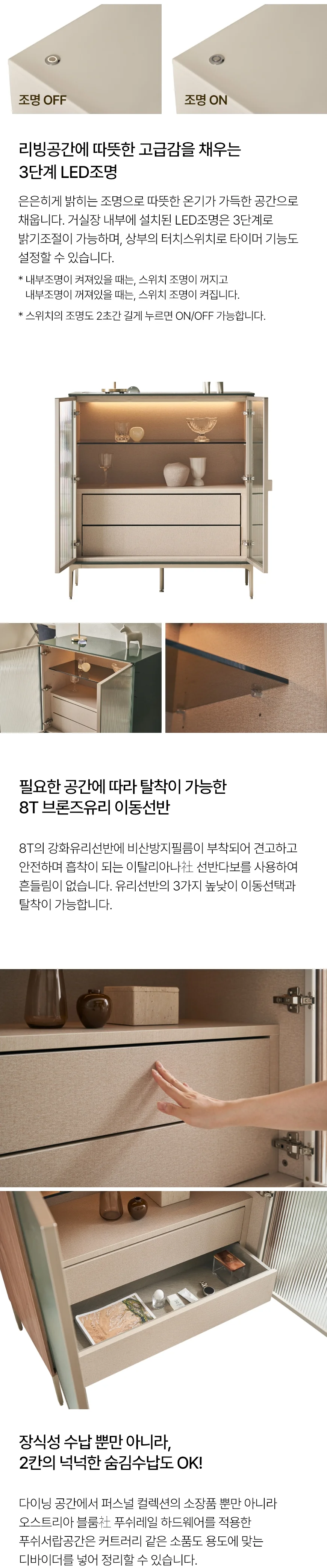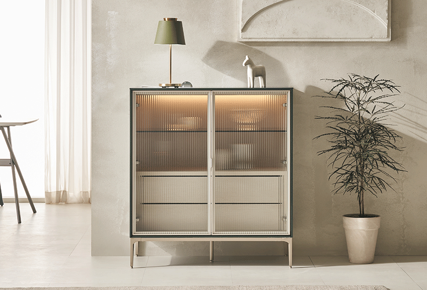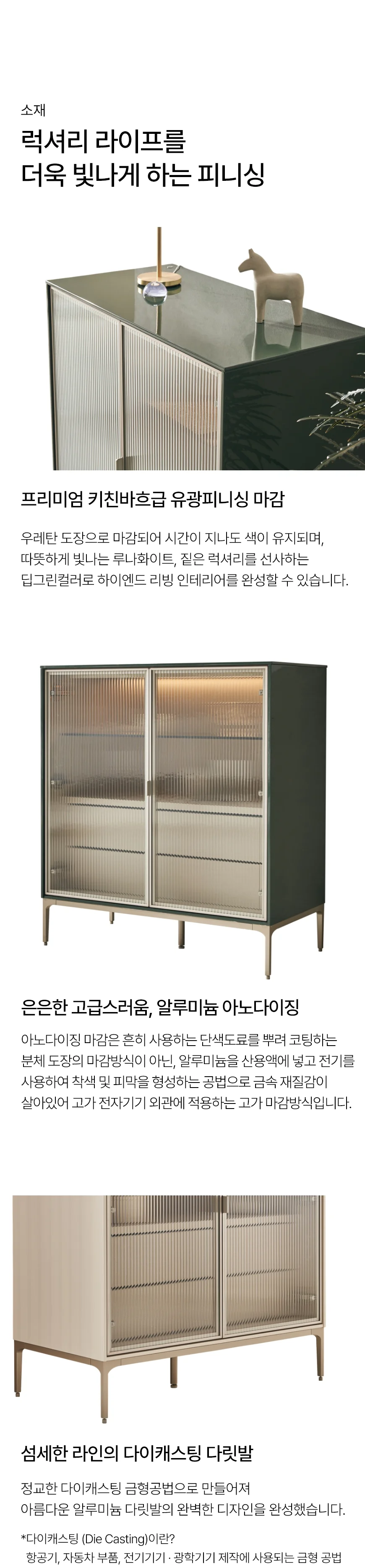 오브제 글라스 사이드장 루나화이트/딥그린 900