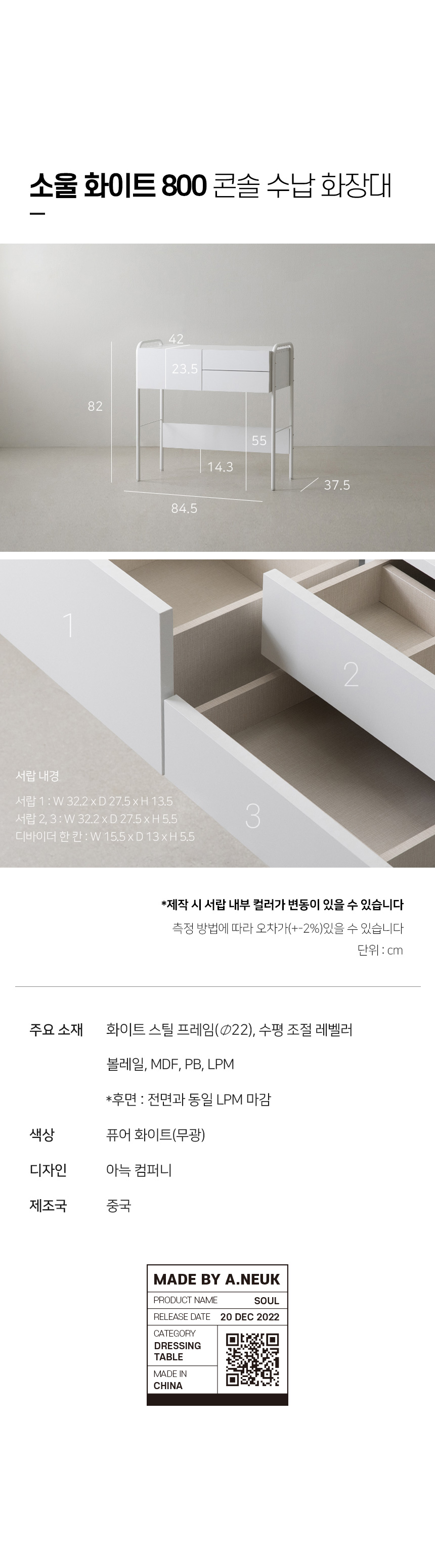 아늑 소울 화이트 800 콘솔 수납 화장대