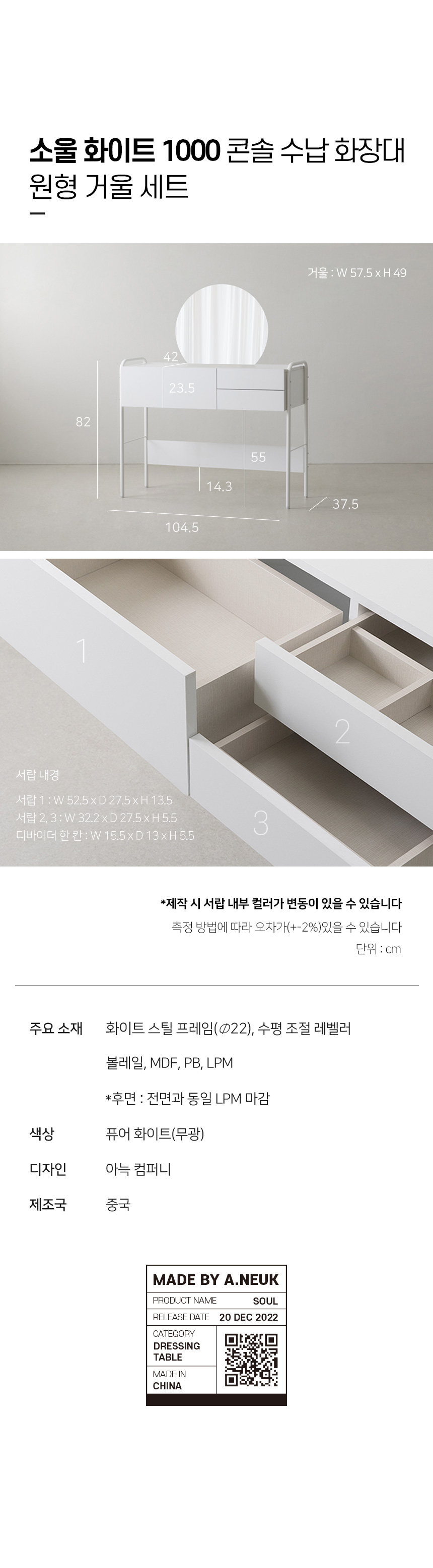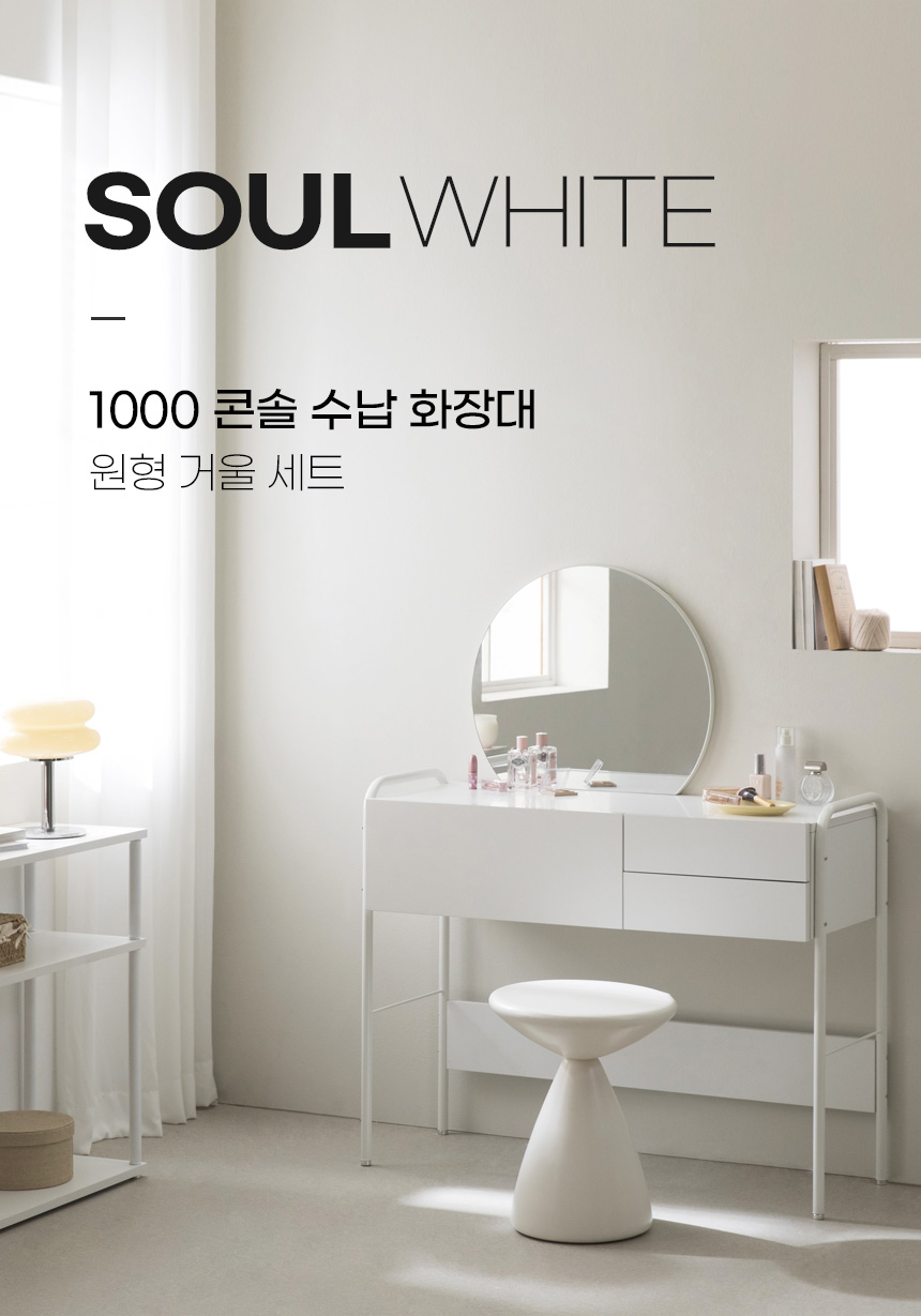 아늑 소울 화이트 1000 콘솔 수납 화장대(원형거울세트)