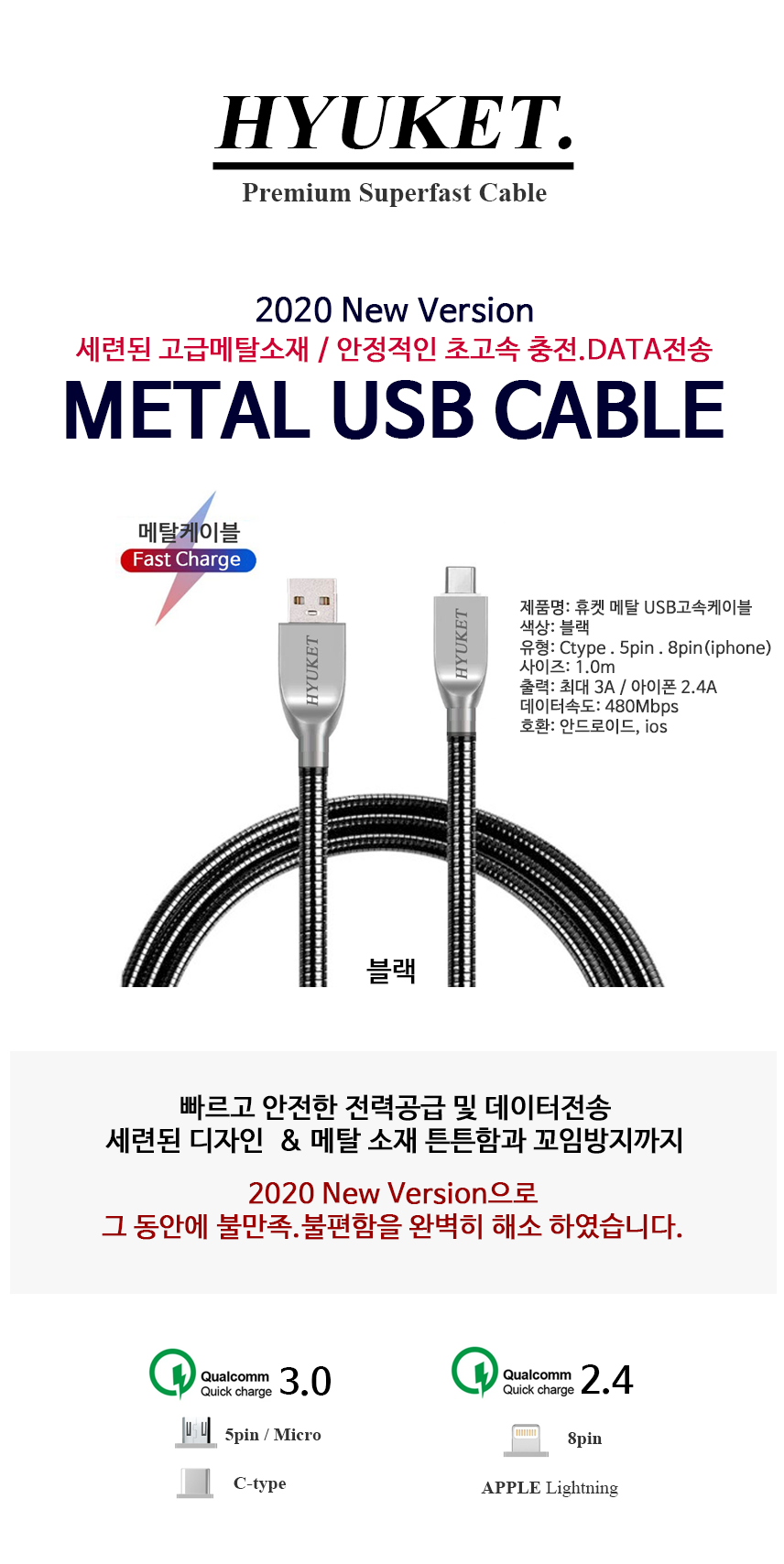 숨결 USB C타입 고속 충전케이블 1+1(메탈+일반)