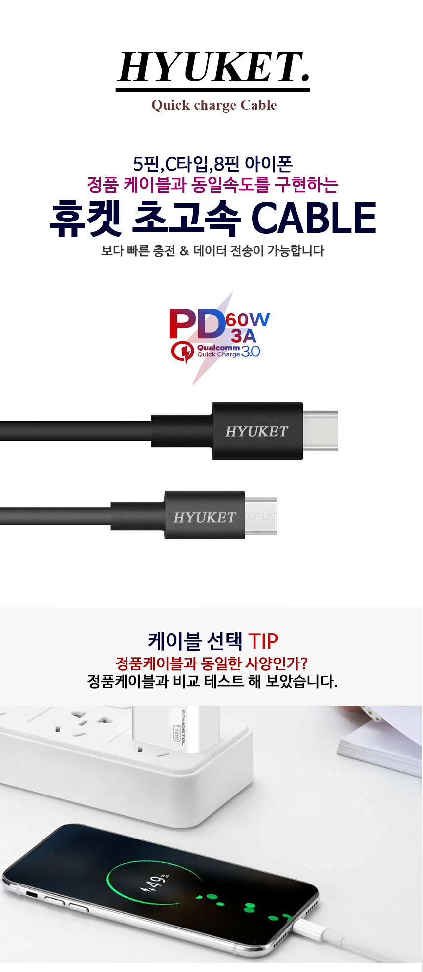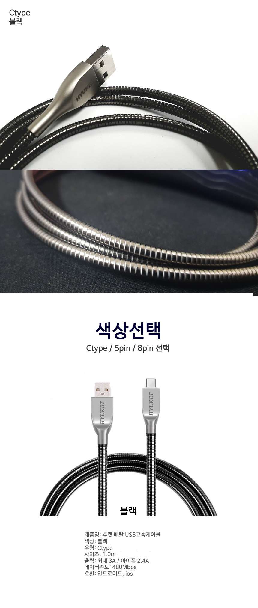 메탈 케이블 C핀(블랙) + 일반케이블 C핀(블랙)