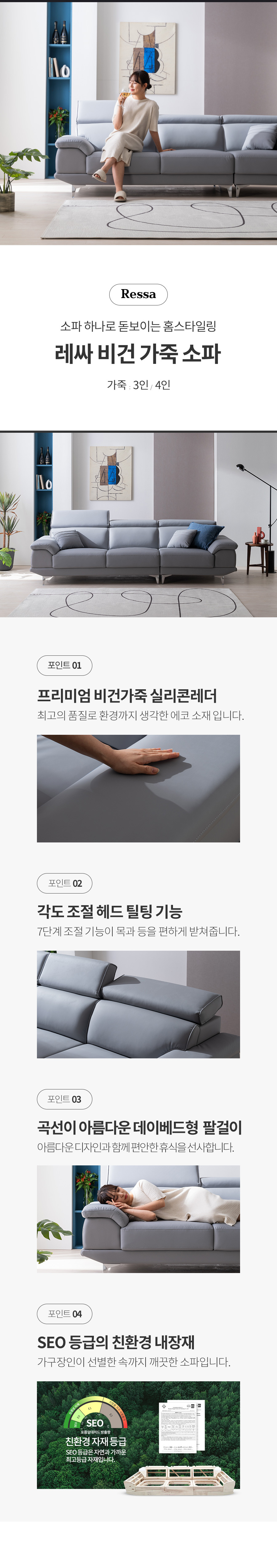 레싸 3인 비건가죽 소파 (실리콘가죽)