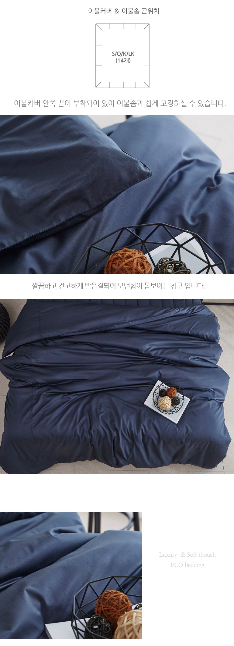 MOC 모달 보들보들한 누빔이불커버베개세트K 네이비